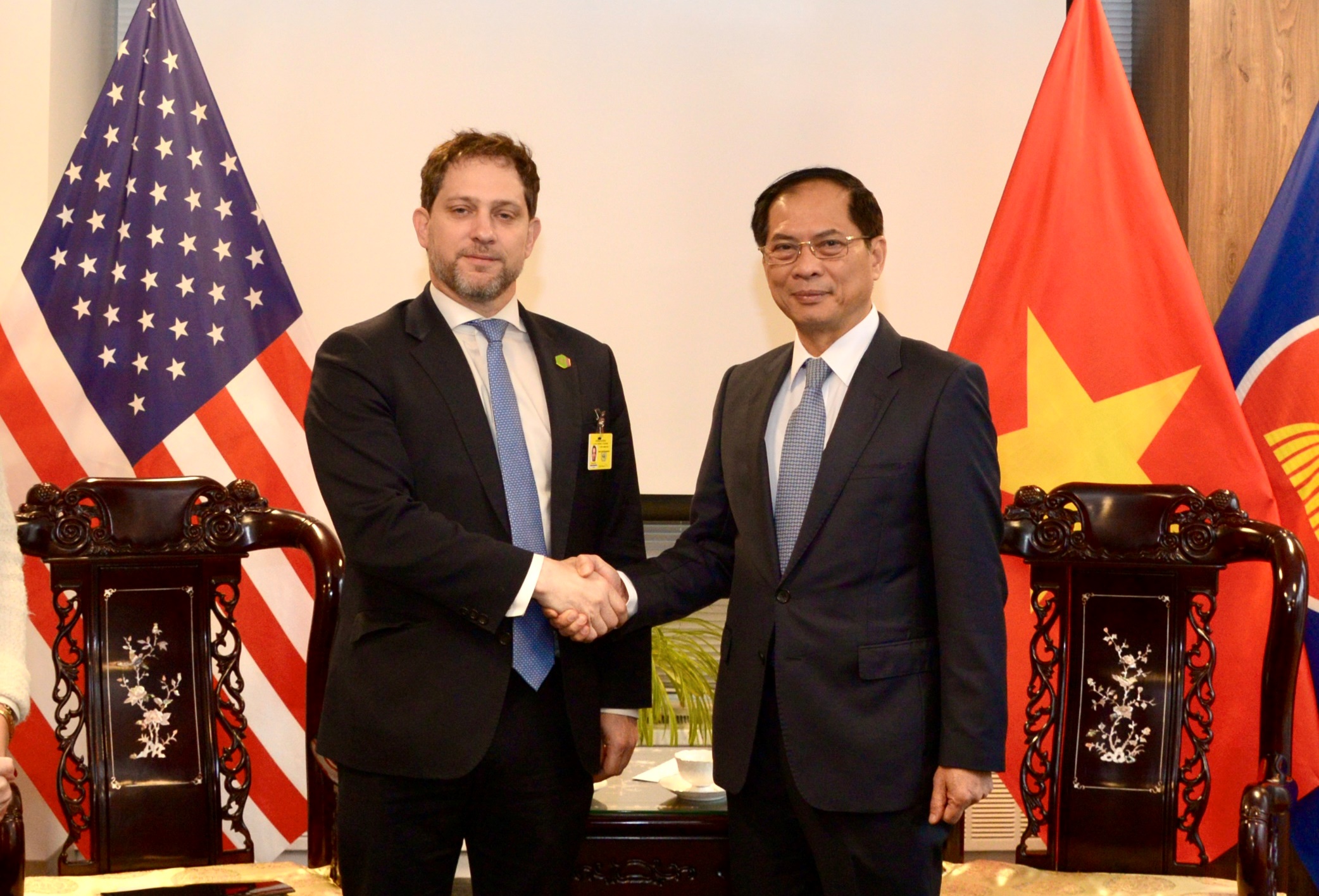 Phó Thủ tướng, Bộ trưởng Ngoại giao Bùi Thanh Sơn với Phó Cố vấn An ninh Quốc gia Hoa Kỳ Jonathan Finer