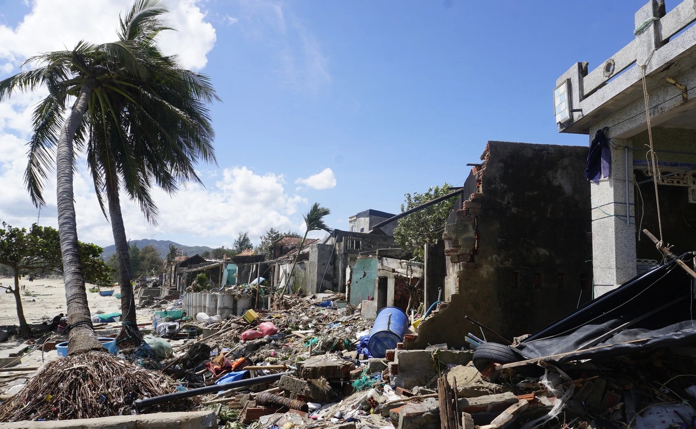 Cảnh tan hoang ở xóm chài sau cơn bão số 13 ở Gia Lai. (Ảnh: Doãn Công)