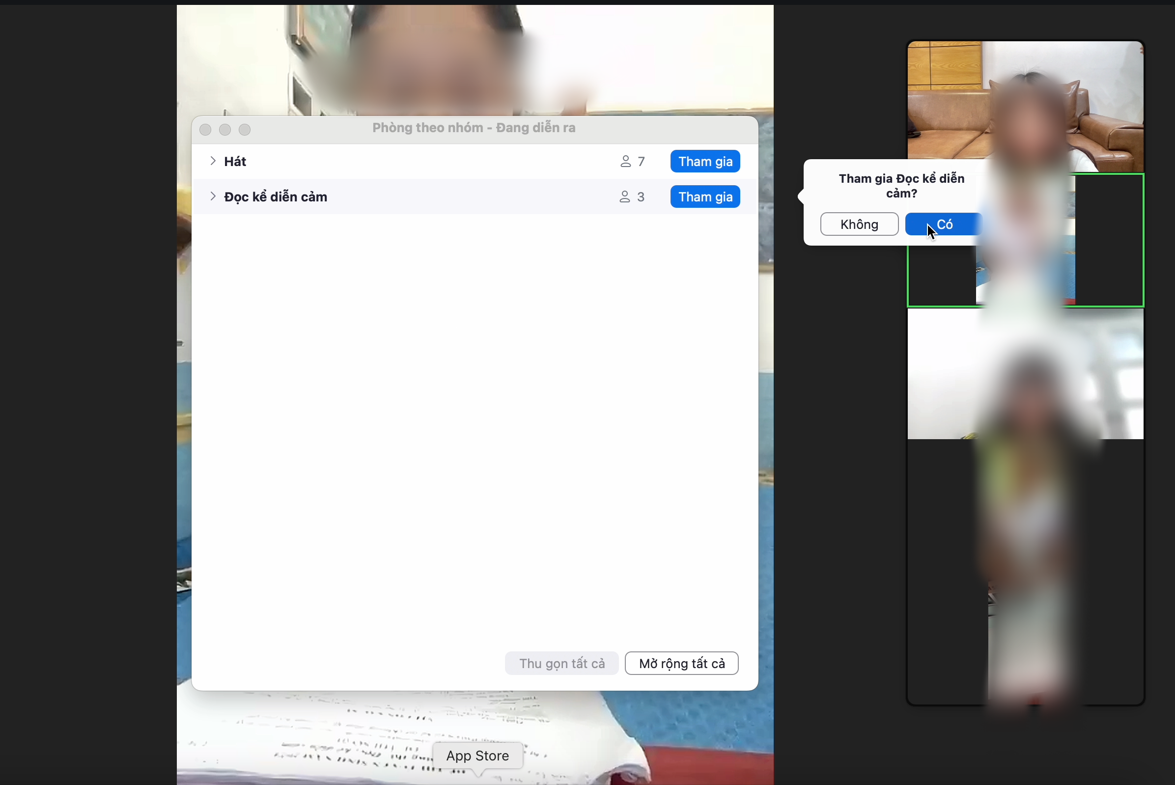 Buổi thi năng khiếu được tổ chức với hai phòng thi gồm hát và đọc kể trên phần mềm Zoom