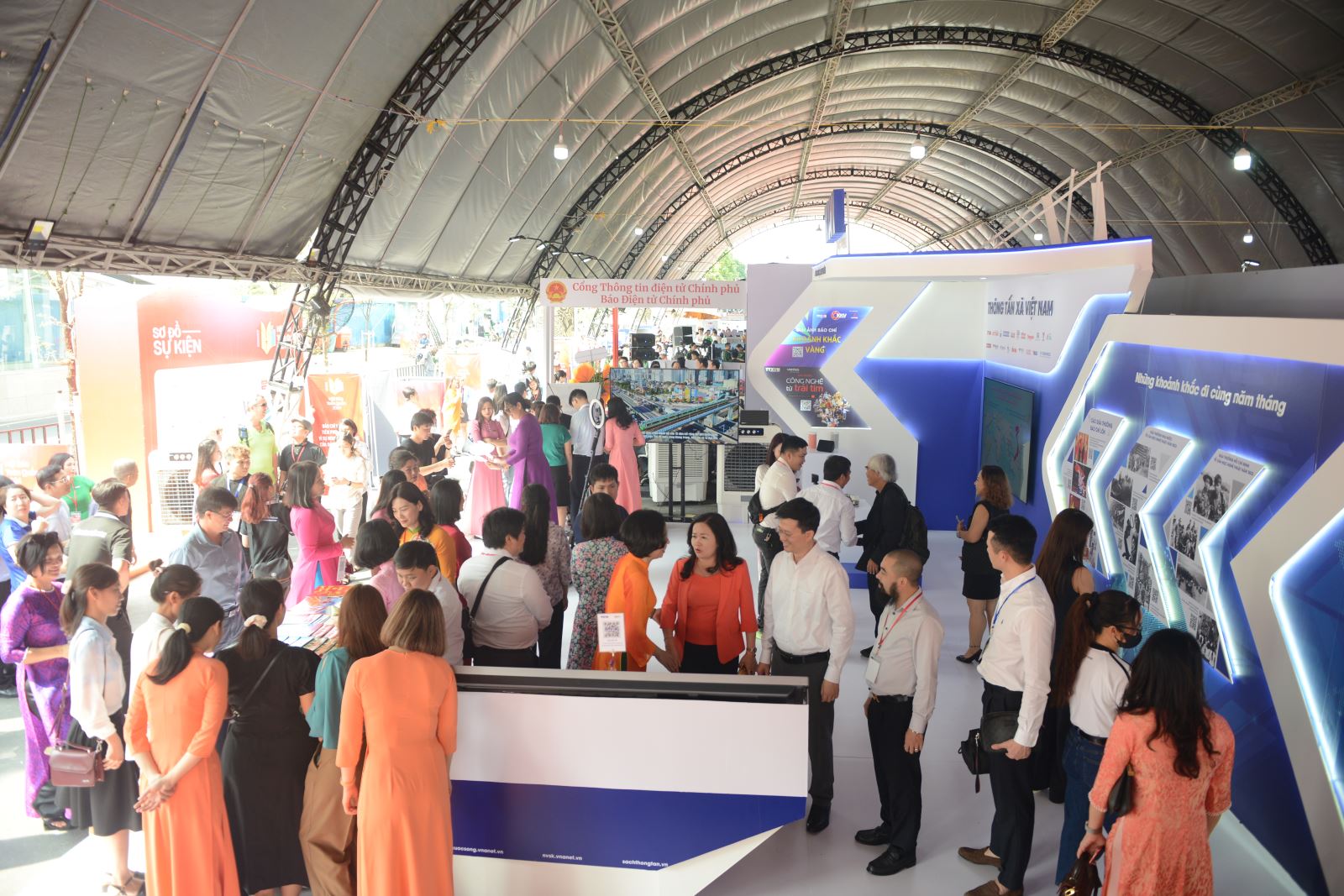 Hội Báo toàn quốc 2024 có quy mô lớn nhất từ trước đến nay, với sự góp mặt của hơn 100 cơ quan báo chí Trung ương và địa phương, 63 Hội Nhà báo các tỉnh, thành phố; 8 gian trưng bày đặc biệt của Báo Nhân Dân, Đài Truyền hình Việt Nam, Đài Tiếng nói Việt Nam, Thông tấn xã Việt Nam, Khối báo chí Quân đội, Khối báo chí Công an, Cổng Thông tin điện tử Chính phủ, Văn phòng Quốc hội; 112 gian trưng bày báo chí đặc sắc của những tờ báo, tạp chí từ phổ biến đến chuyên ngành, bao trùm các mặt đời sống kinh tế – chính trị – văn hóa – xã hội – quốc phòng – an ninh – đối ngoại. Ảnh: TTXVN