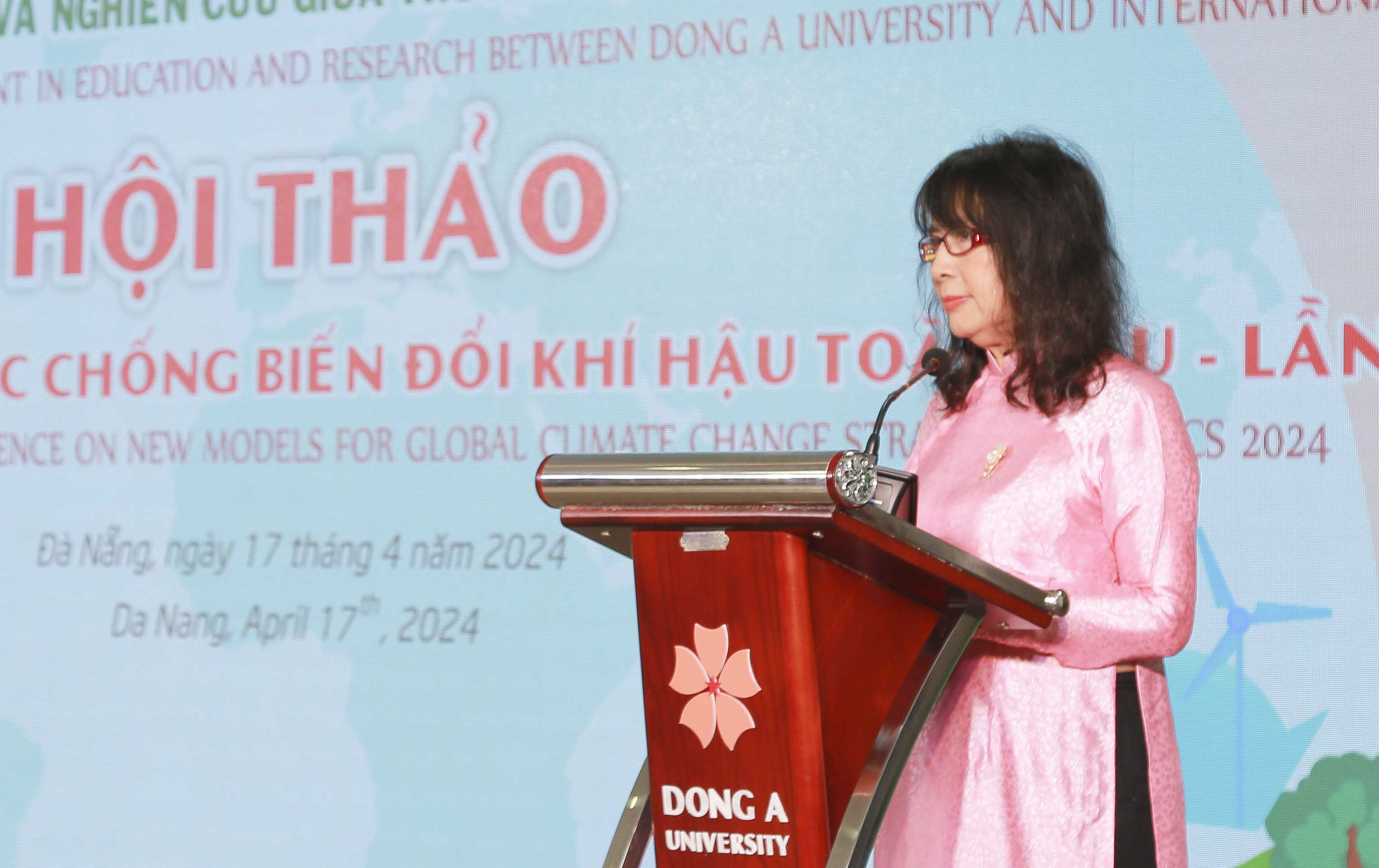 Phát biểu khai mạc hội thảo, TS. Nguyễn Thị Anh Đào – Hiệu trưởng Đại học Đông Á nhấn mạnh vai trò quan trọng của các giải pháp đồng bộ chống biến đổi khí hậu trong lĩnh vực quy hoạch giao thông, nông nghiệp, phát triển công nghệ sản xuất chế biến xanh và giao thông xanh được các diễn giả báo cáo trong hội thảo cũng như các giải pháp và mô hình nghiên cứu đã và đang được triển khai tại khu vực Đà Nẵng và Hội An (Quảng Nam). Những nỗ lực này không chỉ mang lại giá trị ngay tại địa phương mà còn góp phần quan trọng vào sự hiểu biết và chia sẻ kinh nghiệm trên quy mô toàn cầu.
