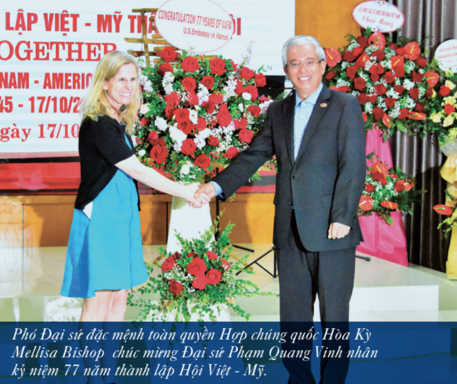 2022 là năm đầu tiên của nhiệm kỳ mới, trên cương vị là chủ tịch, xin đại sứ đánh giá lại một năm qua và nhìn lại những mục tiêu đã đặt ra từ đầu nhiệm kỳ?Chủ tịch Hội Việt - Mỹ, Đại sứ Phạm Quang Vinh: Một năm của nhiệm kỳ mới có một số ấn tượng với tôi. Xét về bối cảnh chung, Hội Việt - Mỹ với hơn 7 thập kỷ hoạt động đã tạo được mối quan hệ ngoại giao nhân dân Việt - Mỹ với bề dài lịch sử và bạn bè đã trở thành nền tảng quan trọng và vững chắc cho nhiệm kỳ này thừa kế. Đại hội IV của Hội diễn ra ngay sau đại hội Đảng lần thứ 13, giữa lúc mối quan hệ Việt - Mỹ diễn ra vô cùng mạnh mẽ, đồng thời lại có chủ trương mới, định hướng mới của Đảng và Nhà nước trong việc phát triển ngoại giao nhà nước và ngoại giao nhân dân. Như vậy nhiệm kỳ này đang diễn ra giữa vô vàn những cơ hội và điều kiện thuận lợi nhưng cũng không thể thiếu những thách thức:Thứ nhất, làm thế nào để phát triển tương xứng với những gì mà bậc tiền bối đã làm được trong suốt 7 thập kỷ qua, có bắt kịp được với đà phát triển của quan hệ hai nước hay không. Đại dịch Covid 19 đã đưa đến những hướng phối hợp mới, chuyển hướng mới và quan hệ Việt-Mỹ đã và đang có rất nhiều bạn bè mới. Điều này đặt ra yêu cầu với Hội cần phải kết nối thế nào để xứng đáng với đà quan hệ bởi giờ đây ở Mỹ có rất nhiều tầng lớp quan tâm và ủng hộ đến Việt Nam không chỉ là chính giới mà còn là học giả, doanh nghiệp, nhân dân và bạn bè cũ... Với bối cảnh như vậy, một năm qua, Hội Việt - Mỹ mà nòng cốt là Ban chấp hành đã gấp rút triển khai trên tất cả các lĩnh vực mà trong đó đáng chú ý là ngay giữa bối cảnh dịch bệnh, Hội đã có nhiều hoạt động trên hình thức trực tuyến. Chúng ta đã có những tọa đàm, trao đổi, những đề xuất cho những dự án tương lai về thúc đẩy quan hệ hữu nghị, quan hệ giữa bạn bè cũ và mới, các dự án khắc phục hậu quả chiến tranh, bom mìn, giúp đỡ cho các nạn nhân chất độc da cam. Hội đã kịp thời huy động bộ máy, cơ chế và phối hợp chặt chẽ với các đơn vị của Liên hiệp các tổ chức Hữu nghị. Hội Việt Mỹ đã thường xuyên trao đổi với ban chấp hành và các thành viên để tích cực kết nối với các Hội hữu nghị địa phương. Chủ tịch Hội Việt - Mỹ, Đại sứ Phạm Quang Vinh Tạp chí Việt - Mỹ đã thực sự trở thành một kênh, công cụ để truyền thông không chỉ công tác của Hội mà còn về giao lưu văn hoá, giao lưu giáo dục thúc đẩy quan hệ hai nước. Tạp chí cũng đã có những đổi mới về mặt nội dung, chuyên mục để ngày càng có thêm nhiều nội dung phong phú, đi sâu và sát với quan hệ Việt - Mỹ. Năm qua, Tạp chí đã khai trương Văn phòng đại diện tại Thành phố Hồ Chí Minh giúp truyền tải thông tin của Hội đến với độc giả tại khu vực phía Nam và kết nối những đối tác, doanh nghiệp, tổ chức, người dân quan tâm đến quan hệ Việt - Mỹ. Trung tâm nghiên cứu trực thuộc Hội Việt - Mỹ dù trong bối cảnh dịch bệnh vẫn tổ chức được nhiều cuộc toạ đàm phục vụ cho công tác đánh giá, tham mưu cho lãnh đạo về tình hình quan hệ hai nước. Điểm nổi bật khác phải kể đến là kết nối với bạn bè truyền thống vẫn được Hội trong nhiệm kỳ mới tiếp tục duy trì và phát huy tốt. Chúng ta cũng vẫn đón được các đoàn đến từ nhiều trường đại học Mỹ vào thăm và làm việc tại Việt Nam. Ở hạng mục bạn bè mới, nhân tố mới, chúng ta phải kể đến hình thức kết nối doanh nghiệp và giáo dục. Hội Việt Mỹ đang hướng tới phát triển Câu lạc bộ kết nối doanh nghiệp nhằm kết nối doanh nghiệp Việt Nam và doanh nghiệp Mỹ hay cả những doanh nghiệp của bà con Việt kiều tại Mỹ. Năm qua, Hội cũng đón một số các giáo sư trường đại học Mỹ mong muốn mang những học bổng đến cho học sinh, sinh viên Việt Nam nhằm kết nối giáo dục. Đây cũng là một hướng phát triển Hội sẽ chú trọng để kết nối thêm giữa các học giả, giáo sư giữa hai nước...Đại hội XIII đề ra chủ trương “xây dựng nền ngoại giao toàn diện, hiện đại với ba trụ cột là đối ngoại đảng, ngoại giao nhà nước và đối ngoại nhân dân”. Trong thời gian qua, đối ngoại nhân dân nói chung và đối ngoại nhân dân Việt - Mỹ nói riêng đã đạt được nhiều thành quả đáng ghi nhận nhưng cũng không ít những hạn chế. Trên cương vị là Chủ tịch Hội Việt - Mỹ, Đại sứ có điều gì trăn trở?Chủ tịch Hội Việt - Mỹ, Đại sứ Phạm Quang Vinh: Công tác đối ngoại nhân dân Việt – Mỹ trước nay đều là câu chuyện xoay quanh kết nối giữa những bạn bè Mỹ vốn trước đây đã gắn bó, ủng hộ Việt Nam qua các thời kỳ khác nhau trên tinh thần hữu nghị bao gồm khắc phục hậu quả chiến tranh và hỗ trợ nhân đạo cho Việt Nam.Nhưng quan hệ Việt - Mỹ giờ đây với tính 