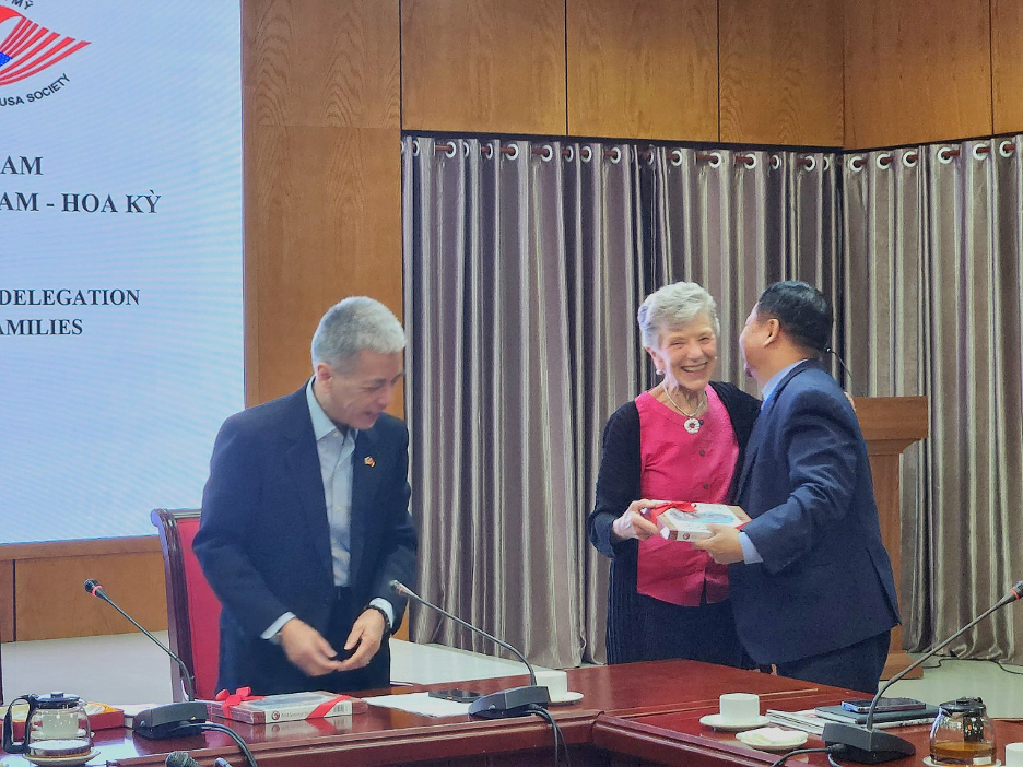 Buổi tiếp đón và giao lưu có sự tham gia của Ông Bùi Thế Giang, Phó Chủ tịch Hội Việt - Mỹ; Ông Bùi Văn Nghị, Trưởng Ban Châu Mỹ, TTK Hội Việt - Mỹ; Bà Jerilyn Brusseau, Đồng sáng lập, Chủ tịch của tổ chức “Cây hòa bình Việt Nam” (Peace Trees Vietnam) và các cựu chiến binh, thân nhân Việt Nam - Hoa Kỳ.