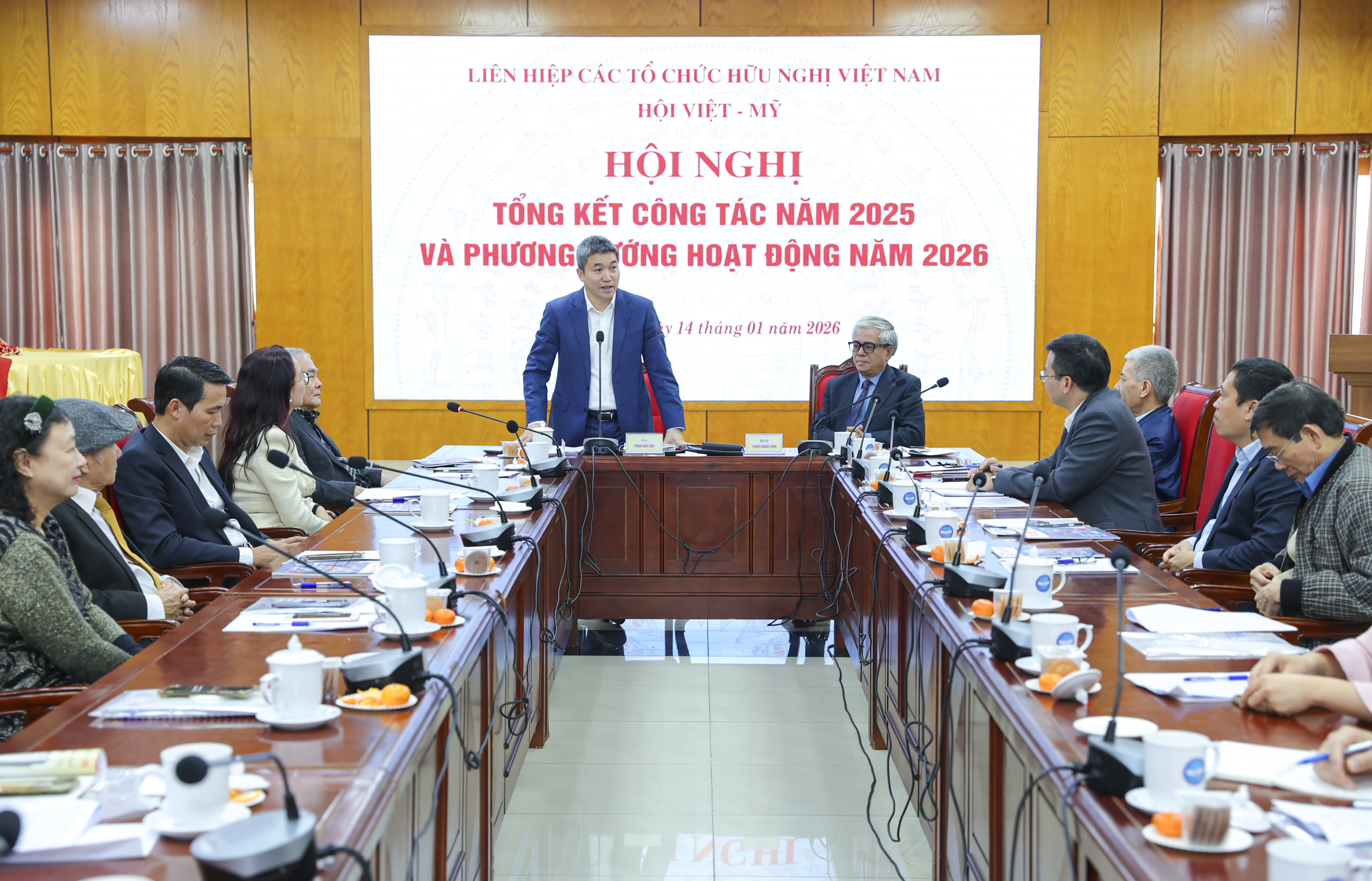 Phát biểu kết luận Hội nghị, tiếp thu ý kiến định hướng và chỉ đạo của Chủ tịch Phan Anh Sơn, Đại sứ Phạm Quang Vinh - Chủ tịch Hội Việt – Mỹ cho rằng các phát biểu định hướng và chỉ đạo của Chủ tịch Phan Anh Sơn đã mở ra nhiều hướng cho hoạt động của Hội trong năm 2026.