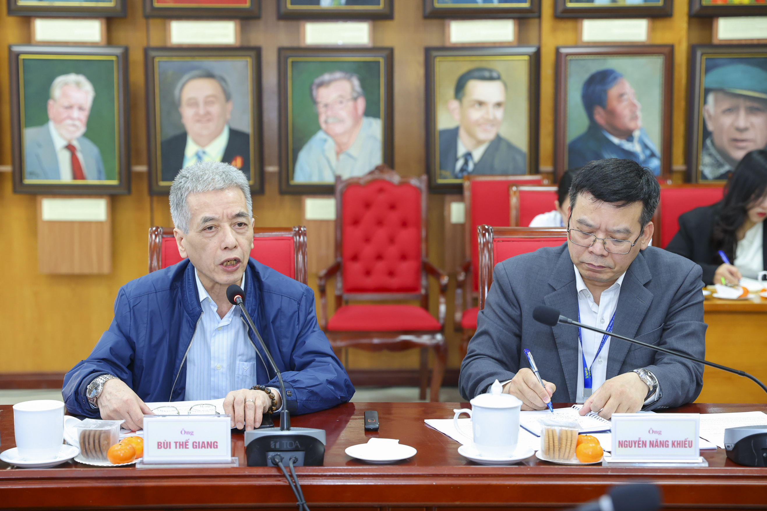 Đại sứ Bùi Thế Giang, Phó chủ tịch Hội Việt - Mỹ, phát biểu thảo luận về Báo cáo Hoạt động năm 2025 của Hội Việt - Mỹ. (Ảnh: Đinh Hòa)