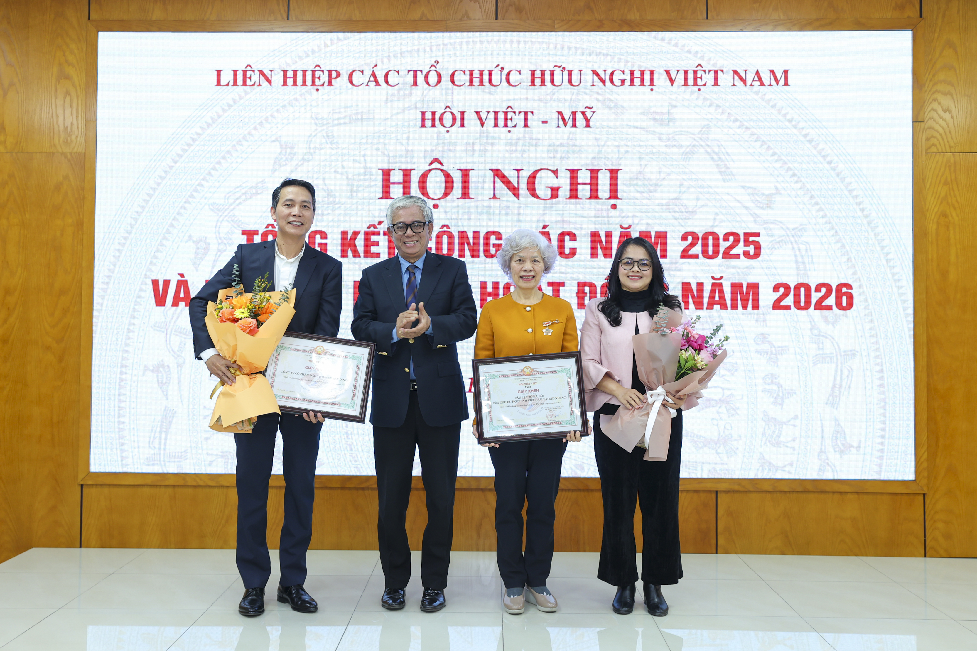 Nhân dịp này, một số tập thể và cá nhân cũng nhận Giấy khen, Kỷ niệm chương vì có nhiều đóng góp cho quan hệ đối ngoại nhân dân Việt - Mỹ trong năm 2025.