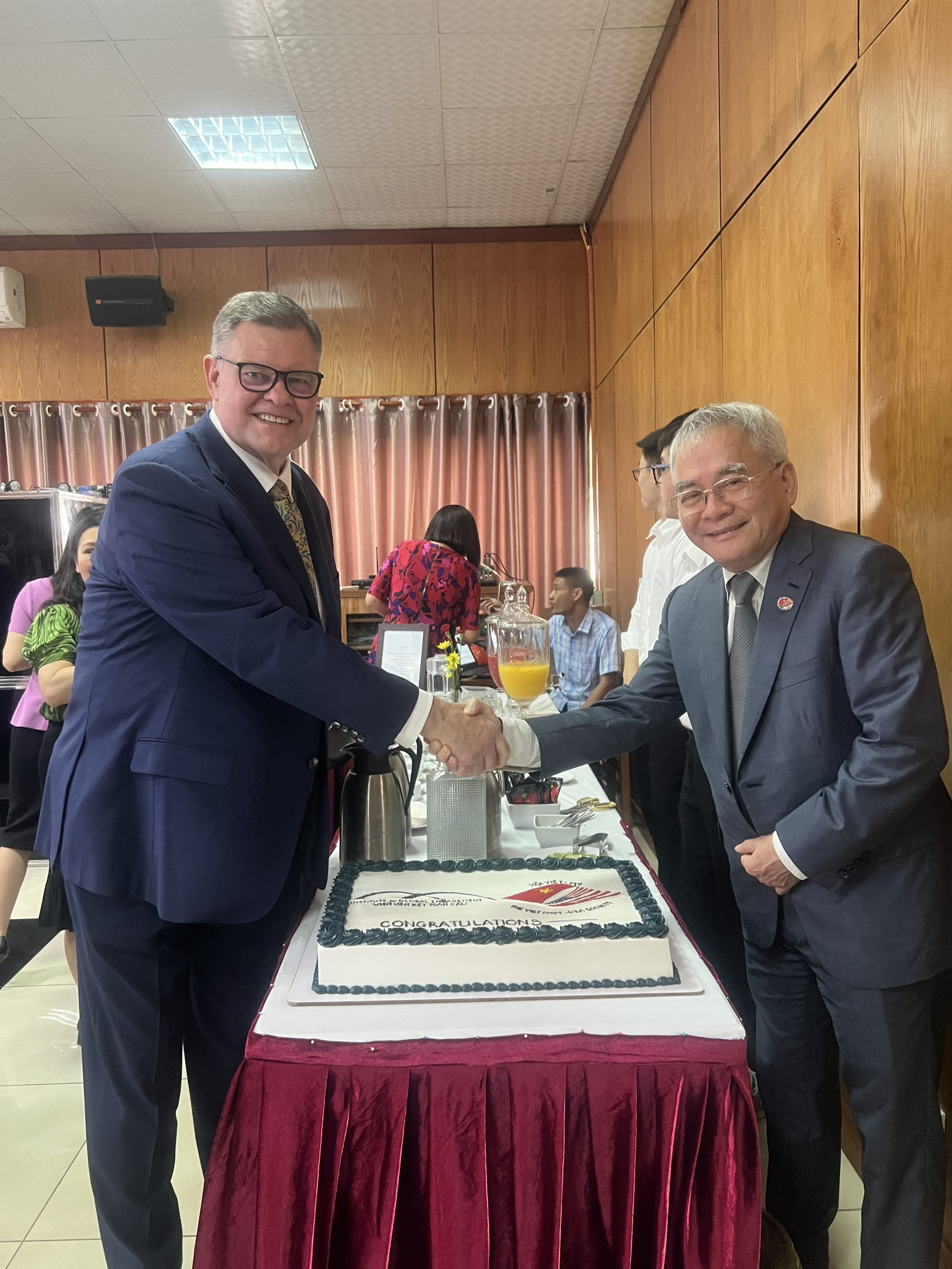 Chủ tịch Viện Liên kết toàn cầu, Tiến sĩ Bob Roberts Jr. và Phó Chủ tịch Hội Việt - Mỹ, ông Nguyễn Hải Giang.
