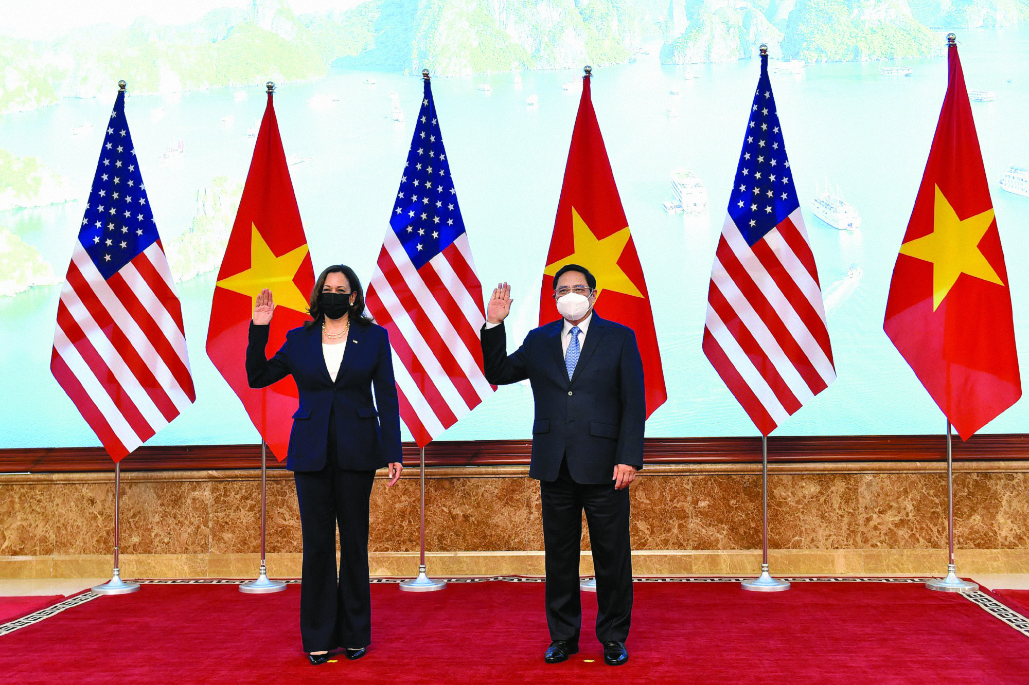 Thủ tướng Việt Nam Phạm Minh Chính tiếp Phó Tổng thống Mỹ Kamala Harris tại Hà Nội, ngày 25/8. Ảnh: Reuters