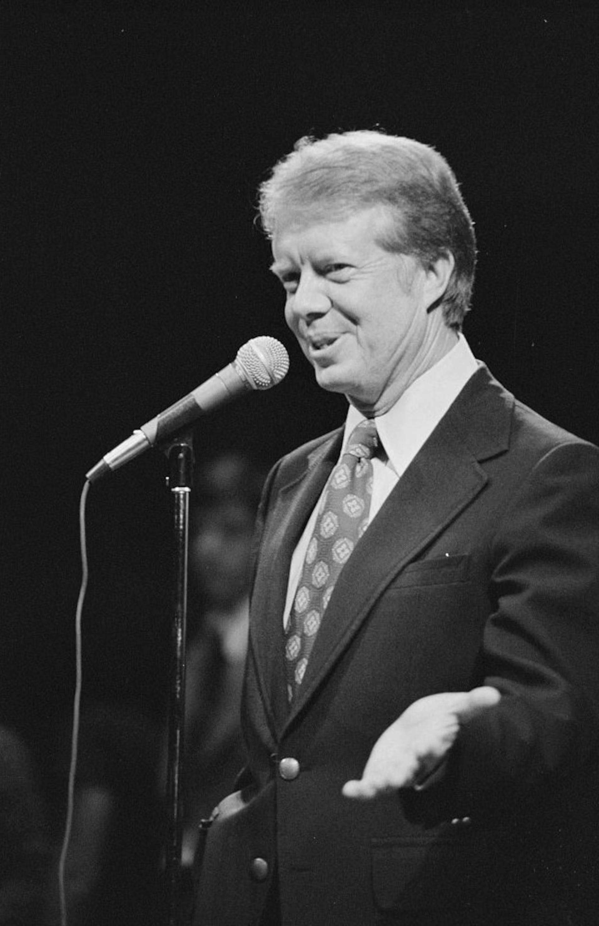 Governor Jimmy Carter speaking at Brooklyn College during a campaign stop in New York, September 7, 1976.