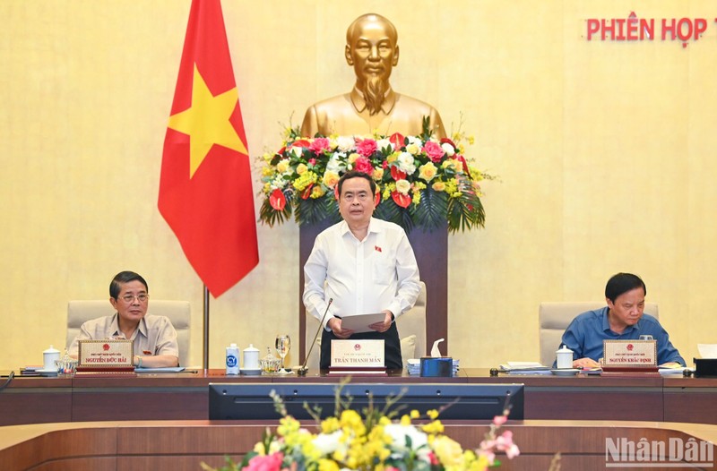 Chủ tịch Quốc hội Trần Thanh Mẫn đề nghị Ủy ban Thường vụ Quốc hội xem xét kỹ và thể hiện rõ quan điểm về các dự án, dự thảo đã đủ điều kiện trình Quốc hội thông qua trong Đợt 2, đặc biệt là những dự án có tác động lớn như Luật Bảo hiểm xã hội (sửa đổi) và các dự án, dự thảo trình Quốc hội thông qua theo quy trình một kỳ họp như Quy hoạch không gian biển quốc gia, Luật Quản lý, sử dụng vũ khí, vật liệu nổ và công cụ hỗ trợ (sửa đổi), và các nghị quyết thí điểm cơ chế, chính sách đặc thù cho Nghệ An, Đà Nẵng.