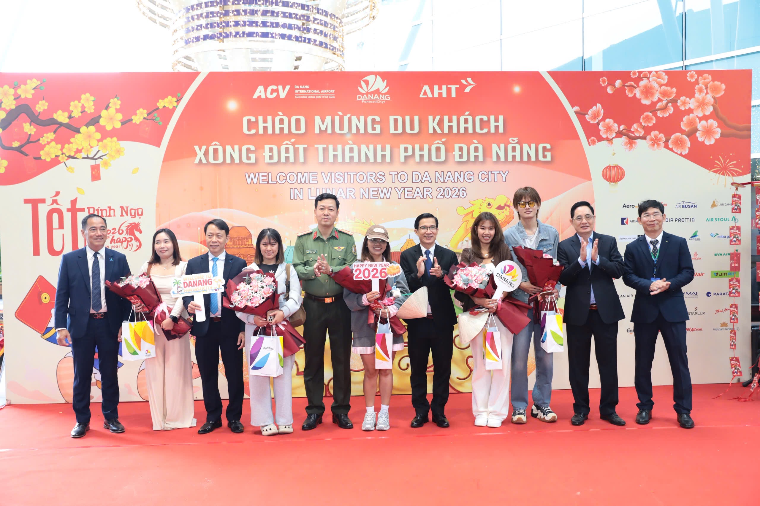 Tại Ga đến quốc tế, đại diện lãnh đạo Sở Văn hóa, Thể thao và Du lịch thành phố Đà Nẵng cùng các đơn vị: Công an cửakhẩu Cảng hàng không quốc tế Đà Nẵng, Hải quan cửa khẩu sân bay quốc tế Đà Nẵng, Cảng vụ Hàng không miền Trung, Cảng hàng không quốc tế Đà Nẵng và Công ty CP Đầu tư Khai thác Nhà ga quốc tế Đà Nẵng đã trao hoa, quà lưu niệm và voucher trải nghiệm dịch vụ cho 05 hành khách may mắn trên chuyến bay. Toàn bộ hành khách cũng được tham gia hái lộc đầu Xuân, nhận những phần quà mang đậm hương sắc Tết Việt như nón lá, đèn lồng, cà phê, bánh dừa và ấn phẩm du lịch.