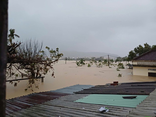 Mưa lũ lịch sử, hoàng loạt ngôi nhà ở Gia Lai ngập trong biển nước. (Ảnh: 24h.com)