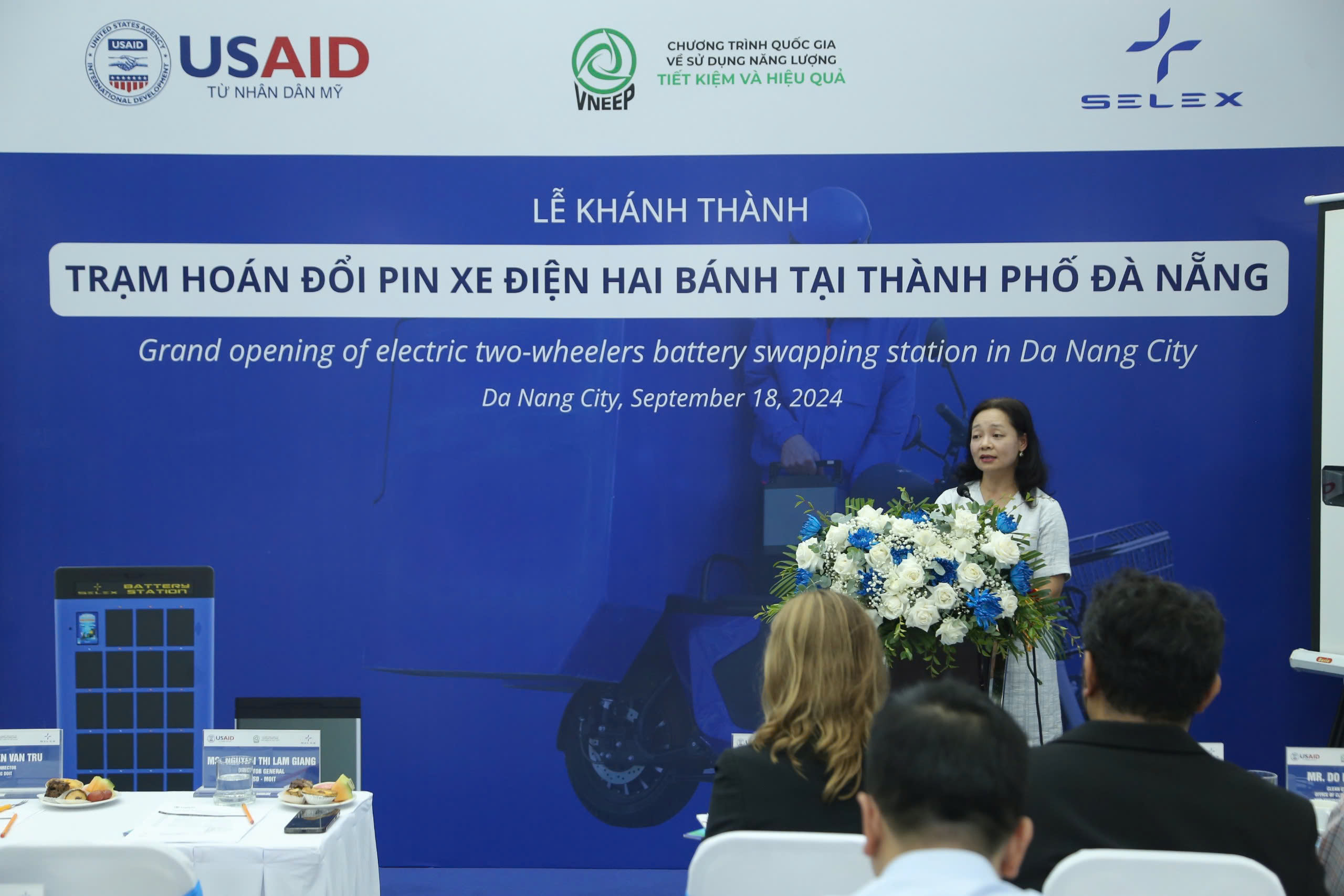 "Việc khánh thành trạm hoán đổi pin xe điện hai bánh đầu tiên tại Đà Nẵng ngày hôm nay, Bộ Công Thương hi vọng sẽ tạo cơ sở ban đầu tốt, là nền tảng để Selex Motors tiếp tục đẩy mạnh phát triển hạ tầng hỗ trợ cho phát triển xe điên hai bánh, nhanh chóng phổ biến việc sử dụng xe điện nói chung, xe điện hai bánh nói riêng tại Đà Nẵng cũng như các địa phương khác của Việt Nam, đồng thời sự thành công của Selex Motors tại Hà Nội, TP. Hồ Chí Minh và Đà Nẵng sẽ là bài học kinh doanh điển hình cho các doanh nghiệp, nhà đầu tư khác tham gia vào thị trường phát triển xe điện tại Việt Nam và xe điện hai bánh nói riêng", bà Nguyễn Thị Lâm Giang cho biết.