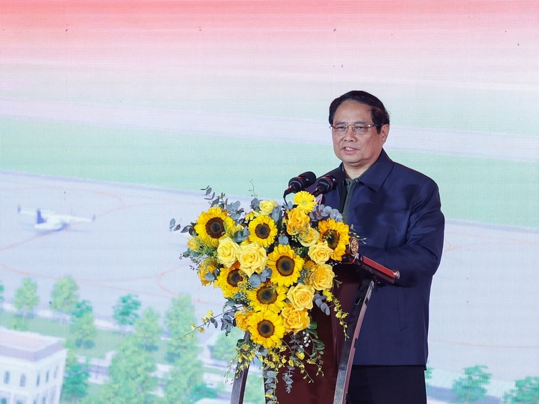 Phát biểu tại lễ khởi công, Thủ tướng Phạm Minh Chính nêu rõ, chúng ta đang đẩy mạnh thực hiện 3 đột phá chiến lược về thể chế, hạ tầng và nhân lực, trong đó có hạ tầng giao thông vận tải với 5 phương thức, gồm vận tải hàng không. Việc phát triển kinh tế hàng không, khai thác không gian vũ trụ (cùng với khai thác không gian ngầm, không gian biển) là một trong những động lực phát triển mới, góp phần thúc đẩy lực lượng sản xuất mới, phục vụ phát triển đất nước trong giai đoạn mới, trong bối cảnh nước ta “đất chật, người đông”.