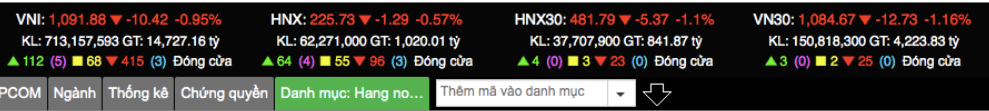Thanh khoản vẫn khá thấp với tổng khối lượng giao dịch trên HoSE đạt 713,16 triệu cổ phiếu, giá trị giao dịch ở mức thấp chỉ hơn 14.727 tỷ đồng. Tổng giá trị giao dịch trên 3 sàn đạt 16.057 tỷ đồng.