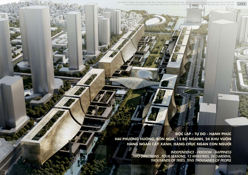 Vượt qua 15 tổ chức Tư vấn thiết kế hàng đầu trong và ngoài nước, liên danh Nikken Sekkei Ltd và Công ty Cổ phần Tư vấn đầu tư và Thiết kế xây dựng Việt Nam (CDC) đã giành chiến thắng đạt giải A cuộc thi Ý tưởng quy hoạch, kiến trúc tổng thể Khu trụ sở làm việc các Bộ, ngành Trung ương tại khu vực Tây Hồ Tây.