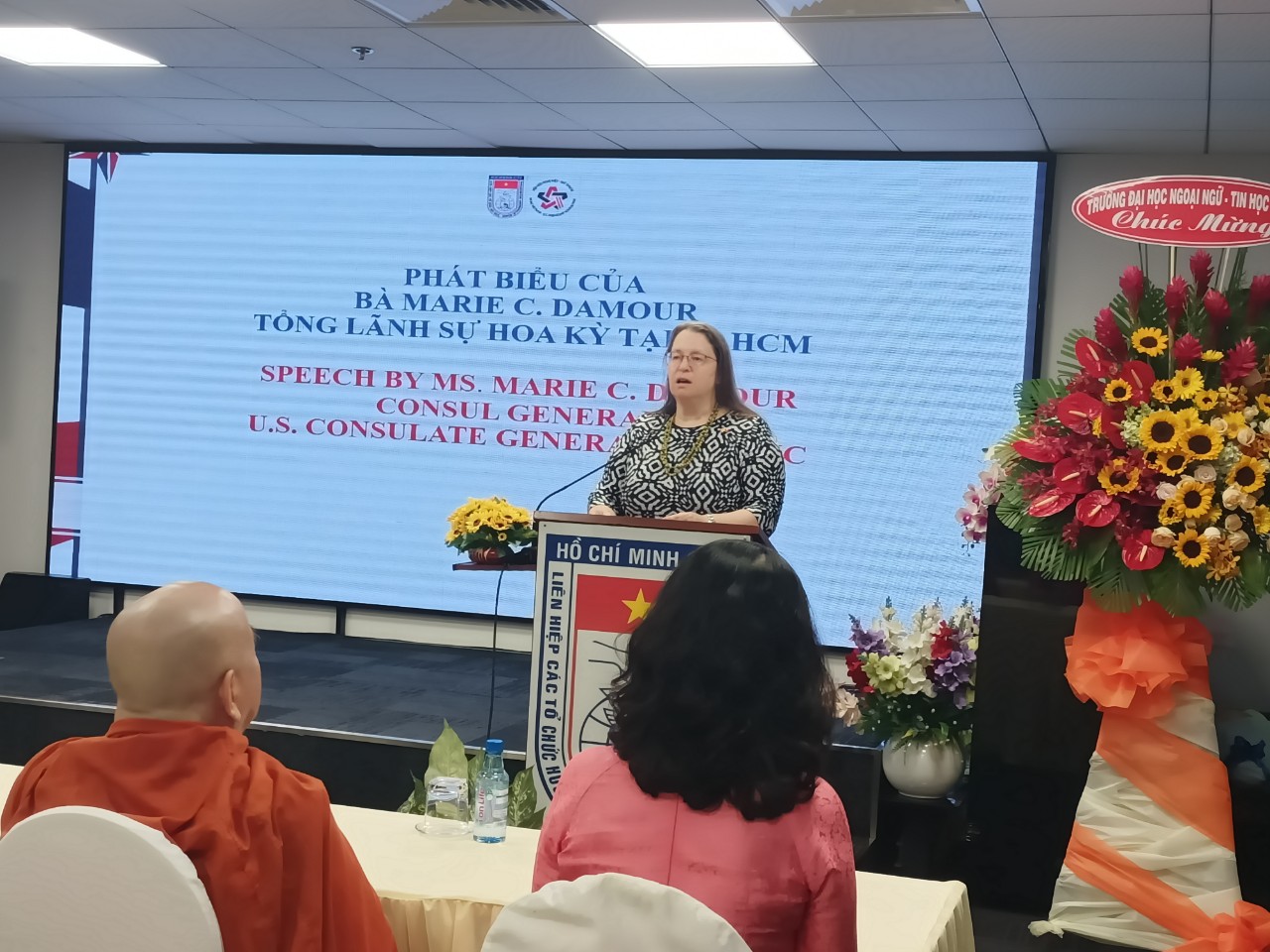 Tổng Lãnh sự quán Hoa Kỳ tại TP. HCM bà Marie C. Damour đã bày tỏa niềm vui về sự phát triển mạnh mẽ trong quan hệ hợp tác giữ Hoa Kỳ với Việt Nam, trong đó có TP. HCM trong suốt 20 năm qua để thúc đẩy mối quan hệ ngoại giao nhân dân bền chặt giữa hai nước và hai dân tộc.