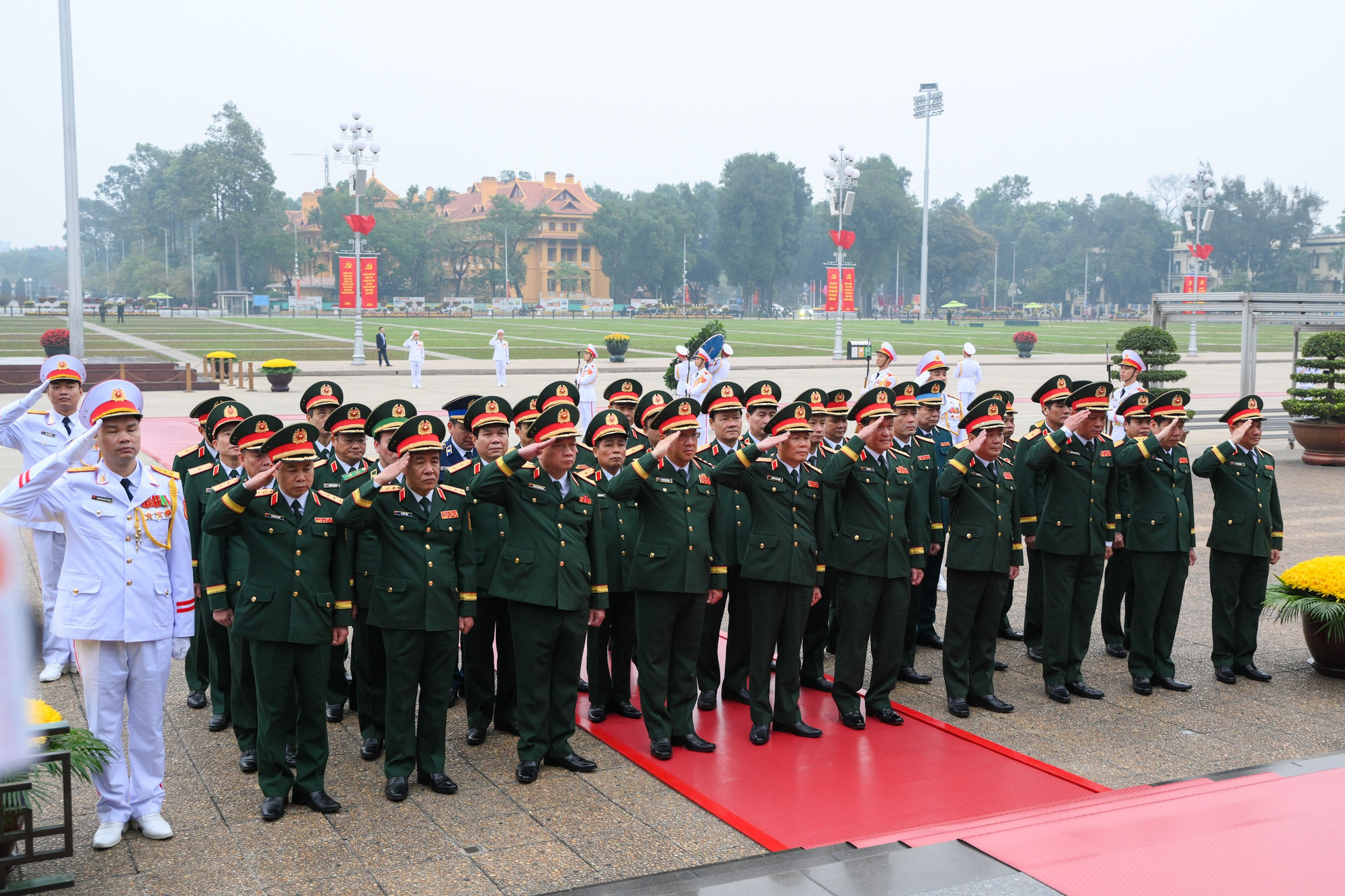 Đoàn đại biểu Quân ủy Trung ương - Bộ Quốc phòng vào Lăng, viếng Chủ tịch Hồ Chí Minh.