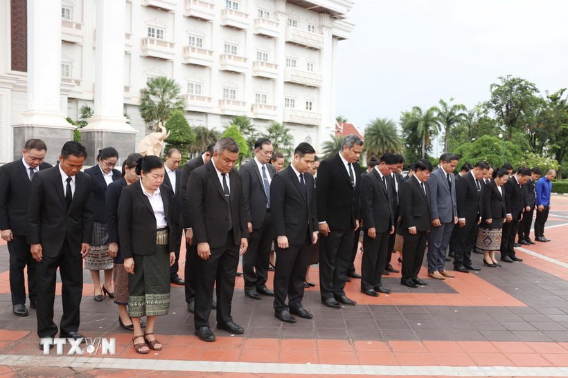 Theo phóng viên TTXVN tại Lào, bắt đầu từ 8 giờ sáng 25/7 tại thủ đô Vientiane, trụ sở Văn phòng Thủ tướng Chính phủ Lào, trụ sở Văn phòng Quốc hội và trước đó là tại trụ sở Văn phòng Trung ương Đảng Nhân dân Cách mạng Lào, Lễ Quốc tang tưởng niệm Tổng Bí thư Nguyễn Phú Trọng đã được tổ chức trang trọng.