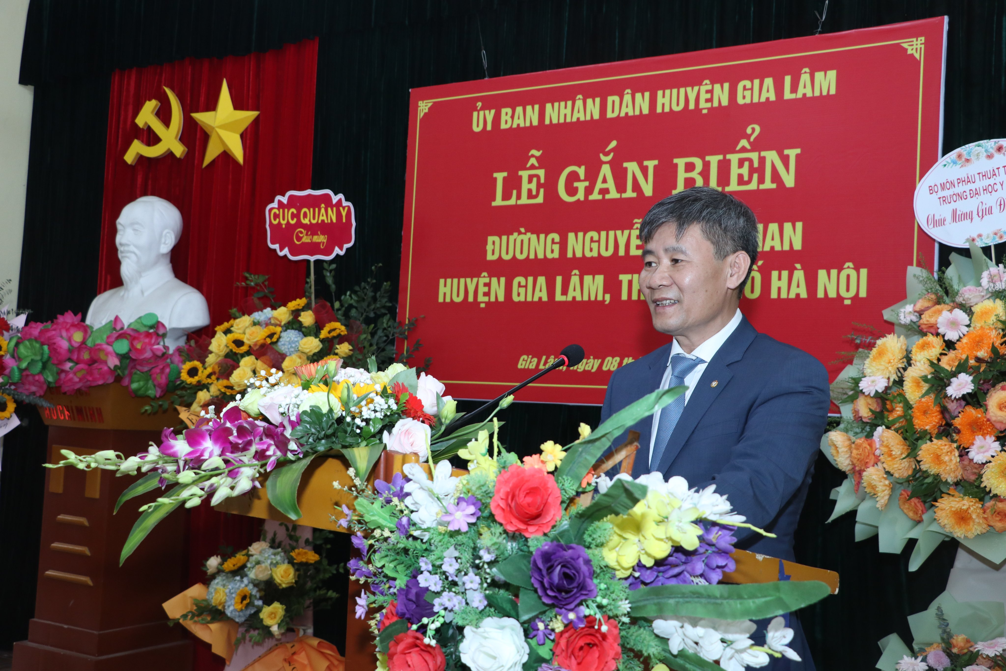 Dự lễ gắn biển có đồng chí Nguyễn Đức Hồng - Uỷ viên BTV Huyện uỷ, PCT UBND huyện; Thượng tá Phạm Hồng Quang - Uỷ viên BTV Huyện uỷ, Chỉ huy trưởng BCH quân sự huyện Gia Lâm.