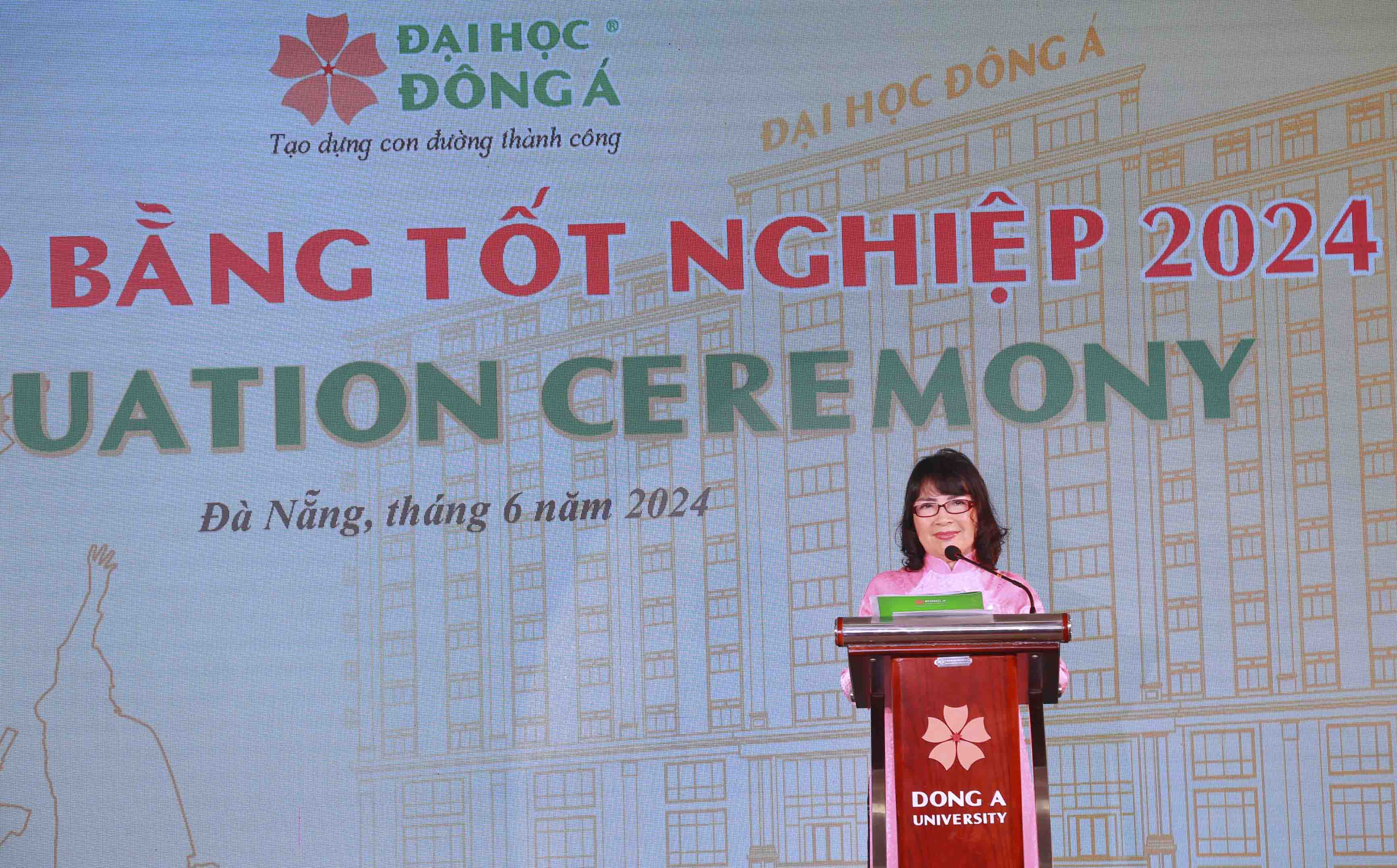 TS. Nguyễn Thị Anh Đào, Hiệu trưởng Đại học Đông Á phát biểu tại lễ tốt nghiệp.
