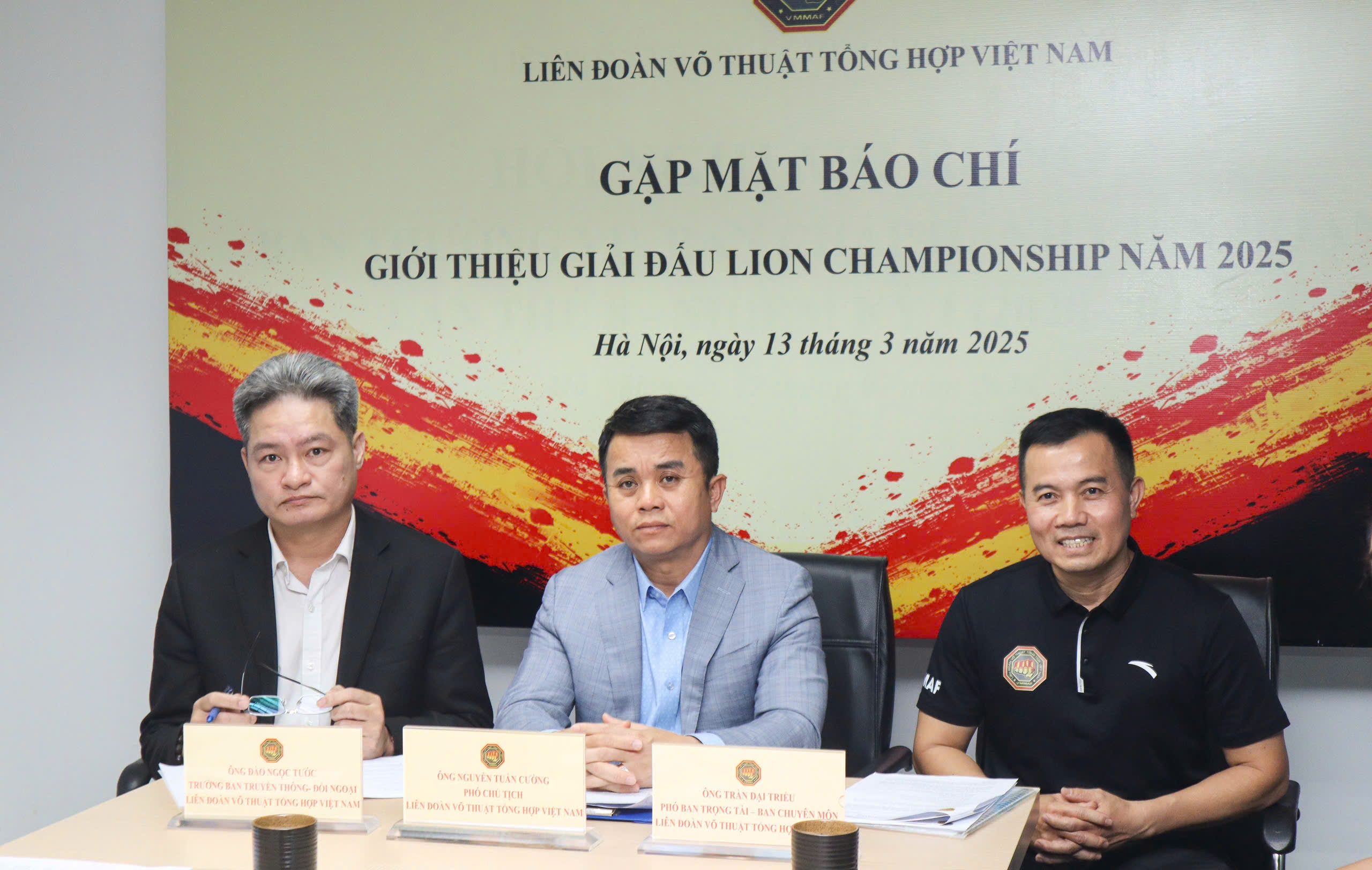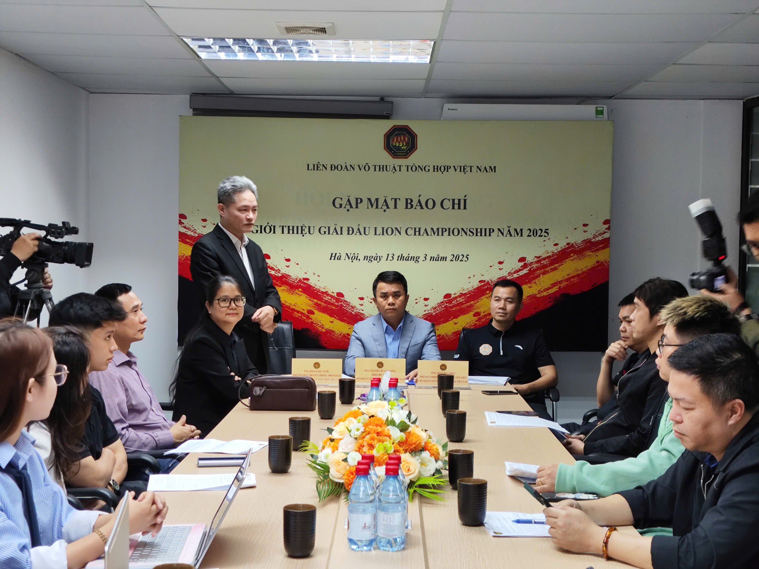 Ngày 13/3, Liên đoàn Võ thuật tổng hợp Việt Nam (VMMAF) cho biết vừa công bố kế hoạch tổ chức Giải đấu LION Championship 2025, Cúp các câu lạc bộ Võ thuật tổng hợp toàn quốc và chuẩn bị lực lượng thi đấu các giải thuộc hệ thống Hiệp hội Võ thuật tổng hợp châu Á.