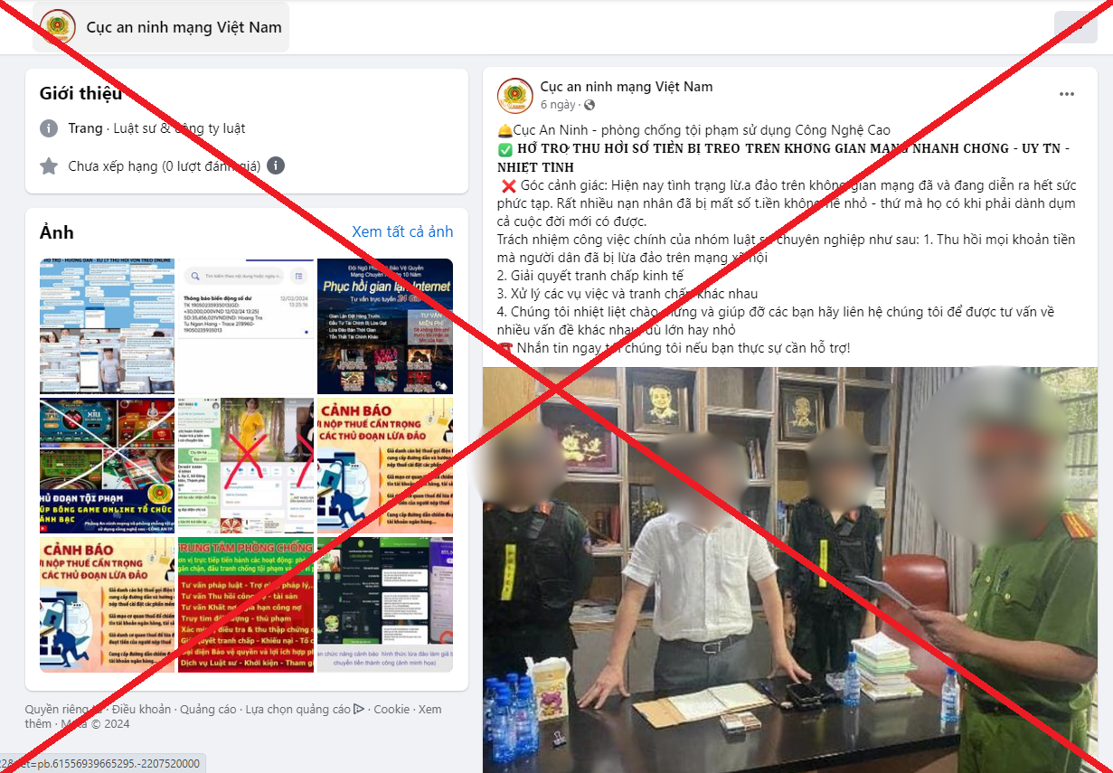 Cục An toàn thông tin – Bộ Thông tin và Truyền thông cho biết, gần đây xuất hiện liên tục các trang mạng xã hội ghi danh Cục An ninh mạng hoặc Cục An ninh mạng và phòng chống tội phạm sử dụng công nghệ cao để đưa thông tin khuyến cáo các thủ đoạn lừa đảo trực tuyến và biện pháp phòng chống; đồng thời cung cấp các dịch vụ pháp lý hỗ trợ công dân như tư vấn lấy lại tiền lừa đảo, hỗ trợ xử lý các vụ bị lừa đảo chiếm đoạt tài sản.Ngoài ra, xuất hiện hàng loạt các trang Fanpage và hội, nhóm tự xưng là cán bộ Cục An ninh mạng và Công an một số đơn vị, địa phương, đăng tải bài viết để hỗ trợ các nạn nhân lấy lại tiền bị lừa đảo do tham gia hoạt động theo lời dụ dỗ của các đối tượng tội phạm công nghệ cao.Thủ đoạn của các đối tượng là đánh vào tâm lý những người từng bị lừa đảo mong muốn lấy lại số tiền đã mất, các đối tượng đã giả danh cán bộ An ninh mạng để hỗ trợ thu hồi tiền lừa đảo. Với lời giới thiệu sẽ hỗ trợ thu hồi tiền bị lừa với thủ tục nhanh chóng hiệu quả thủ tục đơn giản, cam kết lấy lại được tiền. Thay vì đến cơ quan Công an trình báo, người bị lừa lại lên mạng xã hội để nhờ các đối tượng giả danh cán bộ An ninh mạng hỗ trợ lấy lại tiền. Lúc này, các đối tượng hướng dẫn nạn nhân đóng phí để hỗ trợ hoặc làm nhiệm vụ để rút tiền treo trên hệ thống. Khi có người chuyển tiền, các đối tượng thông báo tài khoản ngân hàng bị lỗi và không cho rút tiền về. Hình thức lừa đảo mới người dân cần thận trọng Trước thực trạng nêu trên, Bộ Công an khẳng định: Hiện tại Cục An ninh mạng và phòng chống tội phạm sử dụng công nghệ cao không có trang thông tin chính thức (Website, Fanpage...).Ngoài ra, Cục An ninh mạng và phòng chống tội phạm sử dụng công nghệ cao đang trong quá trình xây dựng trang thông tin chính thống có xác thực để hạn chế tình trạng giả mạo.Còn theo Công an Thành phố Hà Nội khuyến cáo người dân cảnh giác, tuyên truyền đến người thân, bạn bè về thủ đoạn trên. Khi phát hiện các trường hợp có dấu hiệu bị lừa đảo, người dân cần trình báo cơ quan Công an để giải quyết vụ việc theo quy định của pháp luật; không tìm đến các trang mạng xã hội giới thiệu có thể lấy lại tiền bị lừa, tránh bị mắc bẫy của các đối tượng lừa đảo.