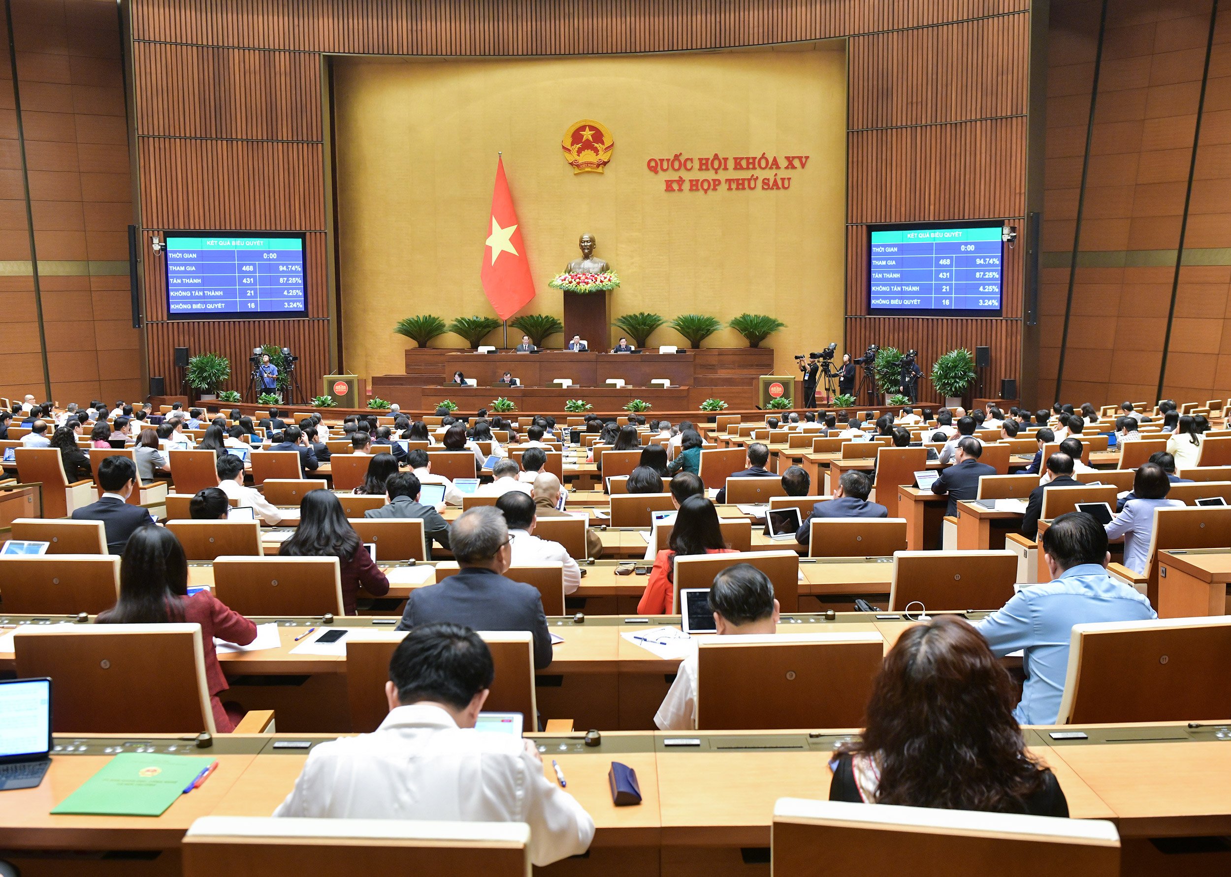 TCVM - Kết quả biểu quyết điện tử cho thấy, có 431 đại biểu tham gia biểu quyết tán thành (chiếm tỷ lệ 87,25%). Như vậy, với đa số đại biểu tham gia biểu quyết tán thành, Quốc hội đã chính thức thông qua Luật Căn cước.