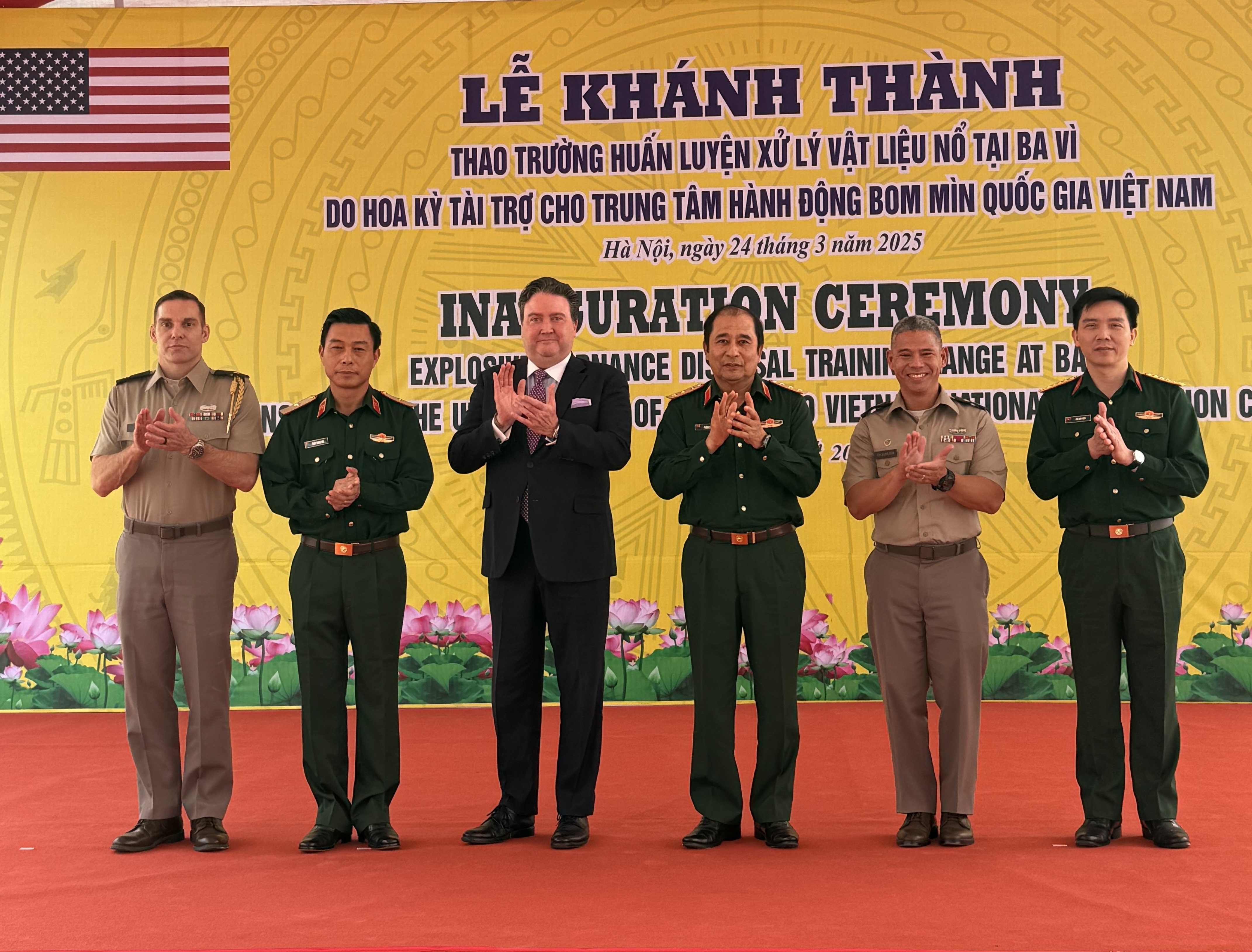 "Kể từ năm 2016, Lục quân Hoa Kỳ tại Thái Bình Dương, thông qua chương trình bom mìn nhân đạo, đã hỗ trợ các nỗ lực rà phá bom mìn của Trung tâm Hành động bom mìn Việt Nam (VNMAC). Thao trường Ba Vì cung cấp cho VNMAC một thao trường chuyên dụng để triển khai huấn luyện hoạt động phá hủy bom mìn quan trọng, tiếp tục phát triển đội ngũ giảng viên và đáp ứng các yêu cầu về quản lý và triển khai các hoạt động để khắc phục hậu quả chiến tranh", Thiếu tướng Okamura cho biết.