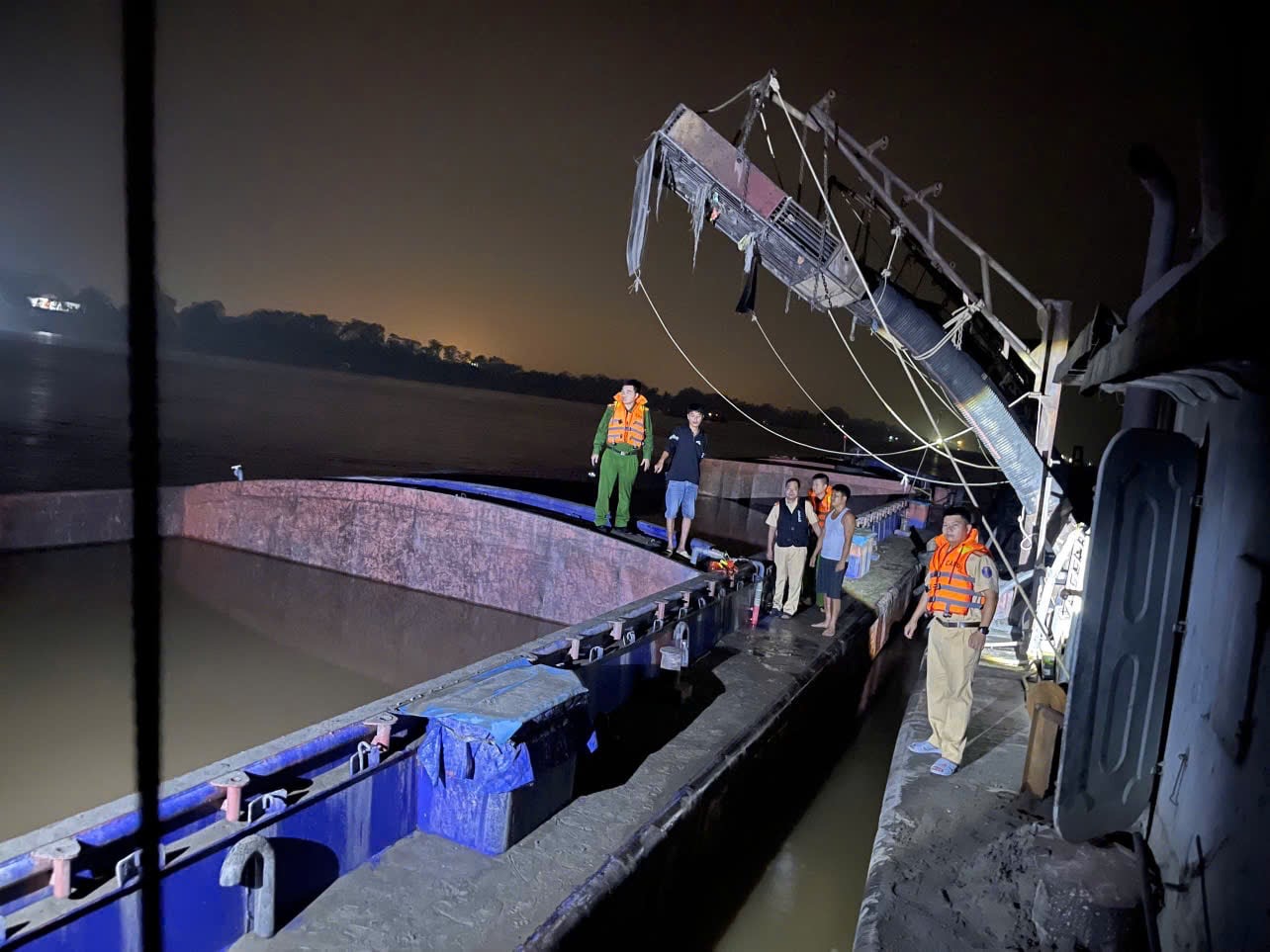 Cụ thể, khoảng 21h15 phút ngày 25/9, Tổ công tác Đội Cảnh sát đường thủy số 1 (Phòng Cảnh sát giao thông) chủ trì phối hợp với Cục Cảnh sát giao thông (Bộ Công an), Công an huyện Phúc Thọ (Hà Nội) trinh sát, mật phục trên tuyên sông Hồng tại địa phận xã Sen Phương, huyện Phúc Thọ, phát hiện, bắt giữ một phương tiện thủy gắn số kiềm soát VR07033693 (trên phương tiện có gắn thiết bị bơm, hút cát) đang hút cát từ lòng sông Hồng bơm cát sang khoang chứa hàng của phương tiện tàu chở hàng gắn số đăng ký VP-1959.