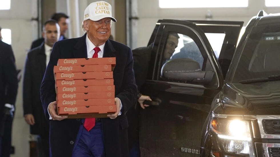 Ông Trump mua pizza cho những người lính cứu hoả bang Iowa, ngày 14/1/2024. Ảnh: AFP