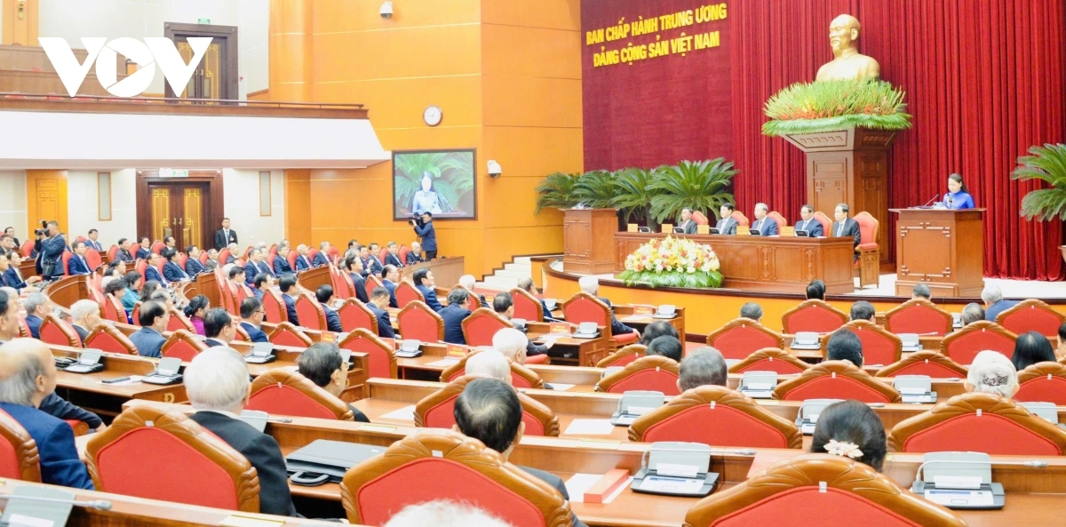 Tổng Bí thư Tô Lâm nhấn mạnh: "Đại hội XIV của Đảng xác định quyết tâm hiện thực hoá 2 mục tiêu 100 năm của đất nước bằng những quyết sách và hành động cụ thể, quyết liệt. Để nước ta trở thành nước phát triển, thu nhập cao vào năm 2045, chúng ta phải phấn đấu đạt tốc độ tăng trưởng liên tục ở mức 2 con số trong suốt giai đoạn sắp tới. Đây là mục tiêu vô cùng khó khăn, nhưng cũng là yêu cầu khách quan, đồng thời là thước đo bản lĩnh, ý chí và khát vọng phát triển của dân tộc. Chúng ta xác định tăng trưởng nhanh nhưng phải bền vững, trên nền tảng ổn định kinh tế vĩ mô, nâng cao năng suất, chất lượng và sức cạnh tranh của nền kinh tế. Muốn vậy, phải tạo đột phá mạnh mẽ về thể chế, về khoa học - công nghệ, đổi mới sáng tạo, chuyển đổi số; phát triến hạ tầng chiến lược và chất lượng nguồn nhân lực; khơi thông mọi nguồn lực trong xã hội; biến khát vọng thành hành động, biến quyết tâm chính trị thành kết quả cụ thể. Để thực hiện những mục tiêu này, phải bắt tay ngay vào hành động, Bộ Chính trị xác định mục tiêu trong quý I/2026 phải hoàn thành việc quán triệt, triển khai Nghị quyết Đại hội XIV trong toàn Đảng; trong năm 2026 phải thể chế hoá, cụ thể hoá những quan điểm mới, những nội dung cốt lõi trong Văn kiện Đại hội XIV của Đảng đã đề ra”.