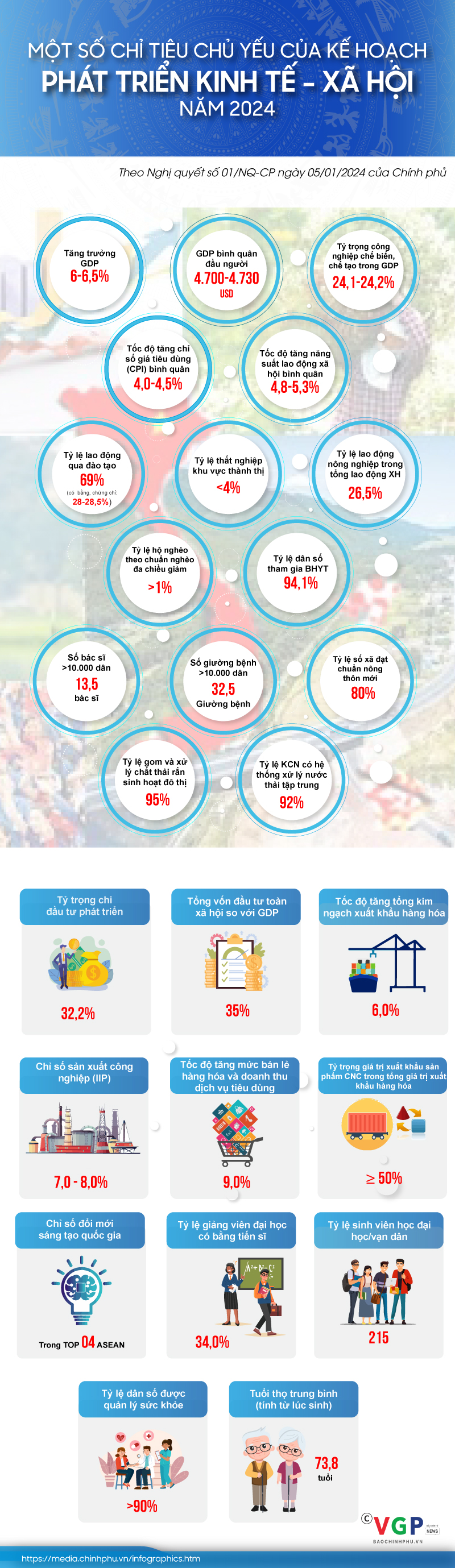 Một số chỉ tiêu phát triển kinh tế xã hội năm 2024