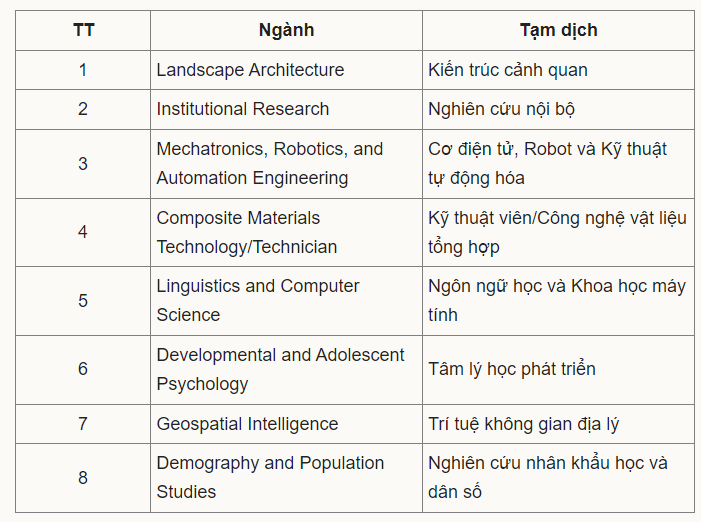 Đây là một trong những căn cứ để nhà chức trách gia hạn thời gian làm việc cho sinh viên quốc tế. Theo đó, 8 ngành mới bao gồm:
