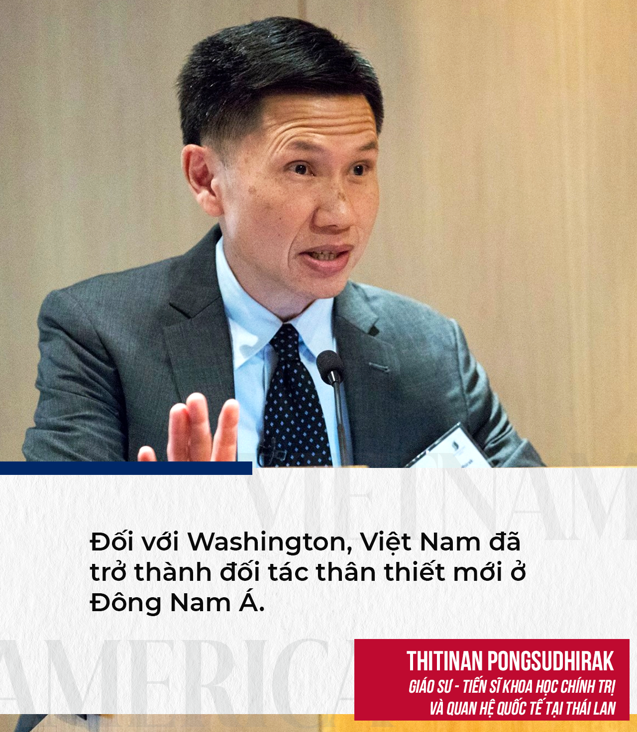 Trong khi đó, theo Giáo sư - Tiến sĩ Khoa học Chính trị và Quan hệ Quốc tế Thitinan Pongsudhirak tại Thái Lan, chuyến thăm của Tổng thống Joe Biden đã làm nổi bật một điều: "Đối với Washington, Việt Nam đã trở thành đối tác thân thiết mới ở Đông Nam Á".