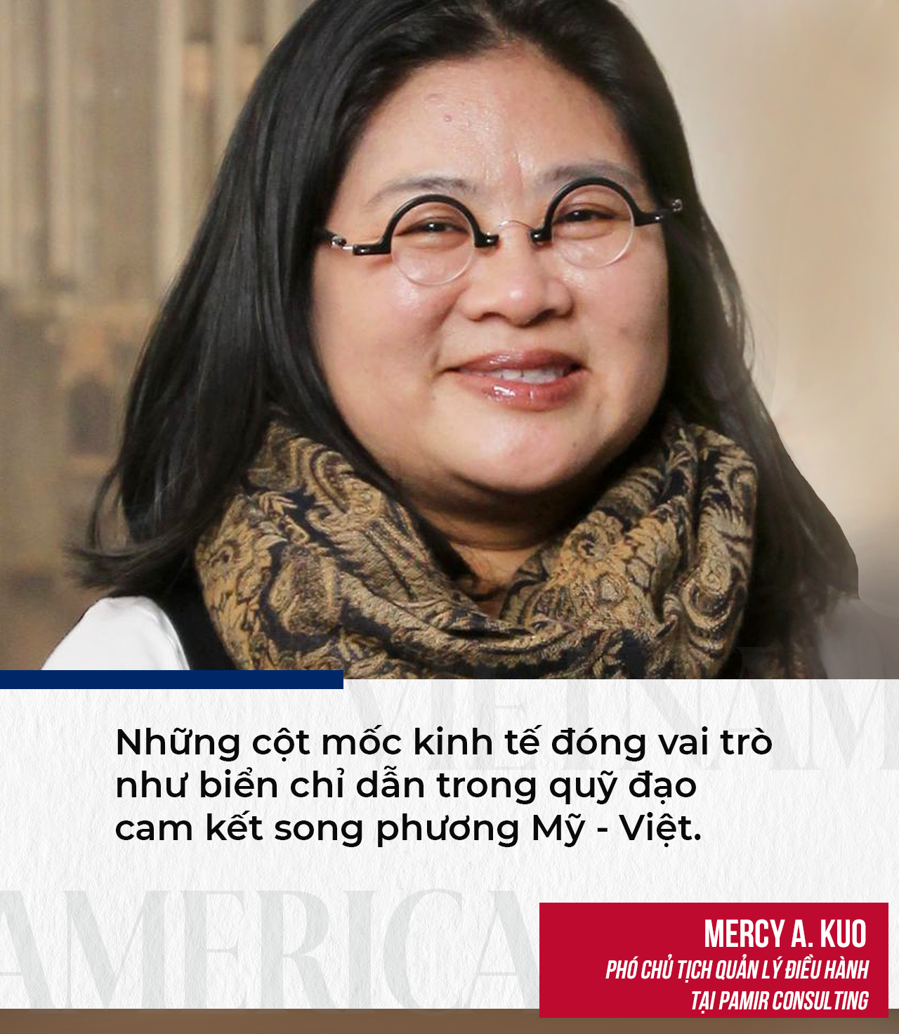Đồng quan điểm đó, bà Kuo nhận định, tất cả những cột mốc quan trọng này đã thúc đẩy tiến trình hợp tác Mỹ-Việt trong gần 3 thập kỷ qua. Chúng đóng vai trò như những biển chỉ dẫn trong quỹ đạo cam kết song phương, nhằm mở rộng quan hệ kinh tế, đầu tư, thương mại và công nghệ vì lợi ích của cả hai nước trên phạm vi quốc gia và khu vực.