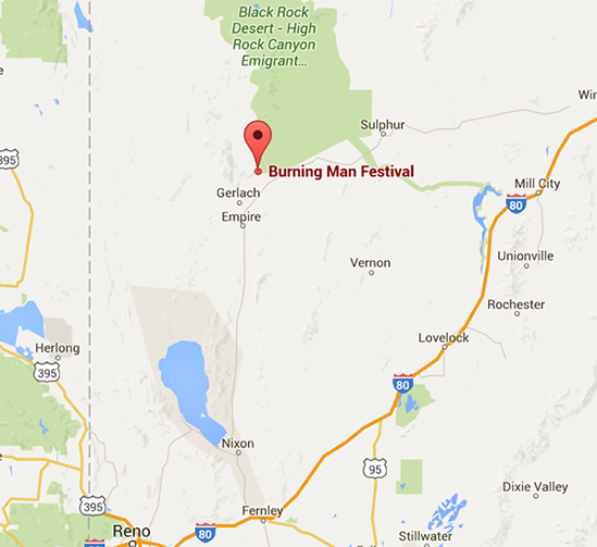 Vị trí diễn ra sự kiện Burning Man. Đồ họa: Google Maps