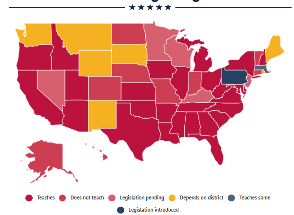 Các bang dạy chữ viết tay ở Mỹ. Nguồn: LiveNow Fox/ Tổ chức Phân tích chữ viết tay Hoa Kỳ
