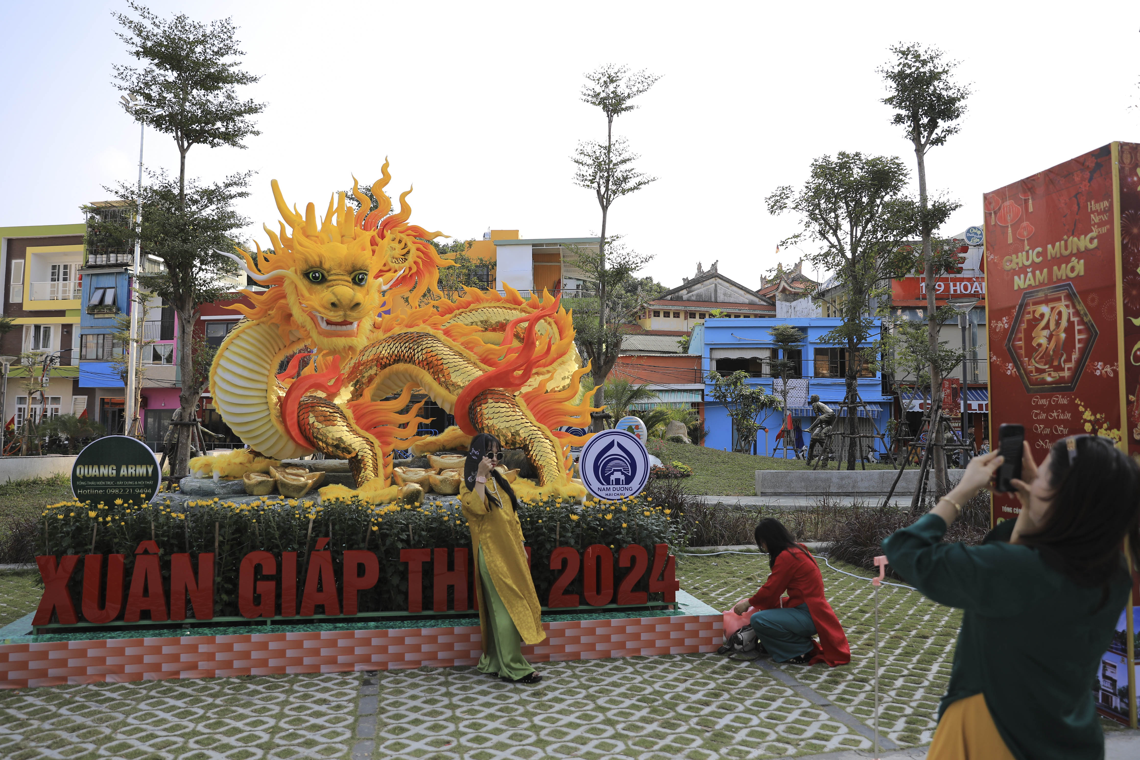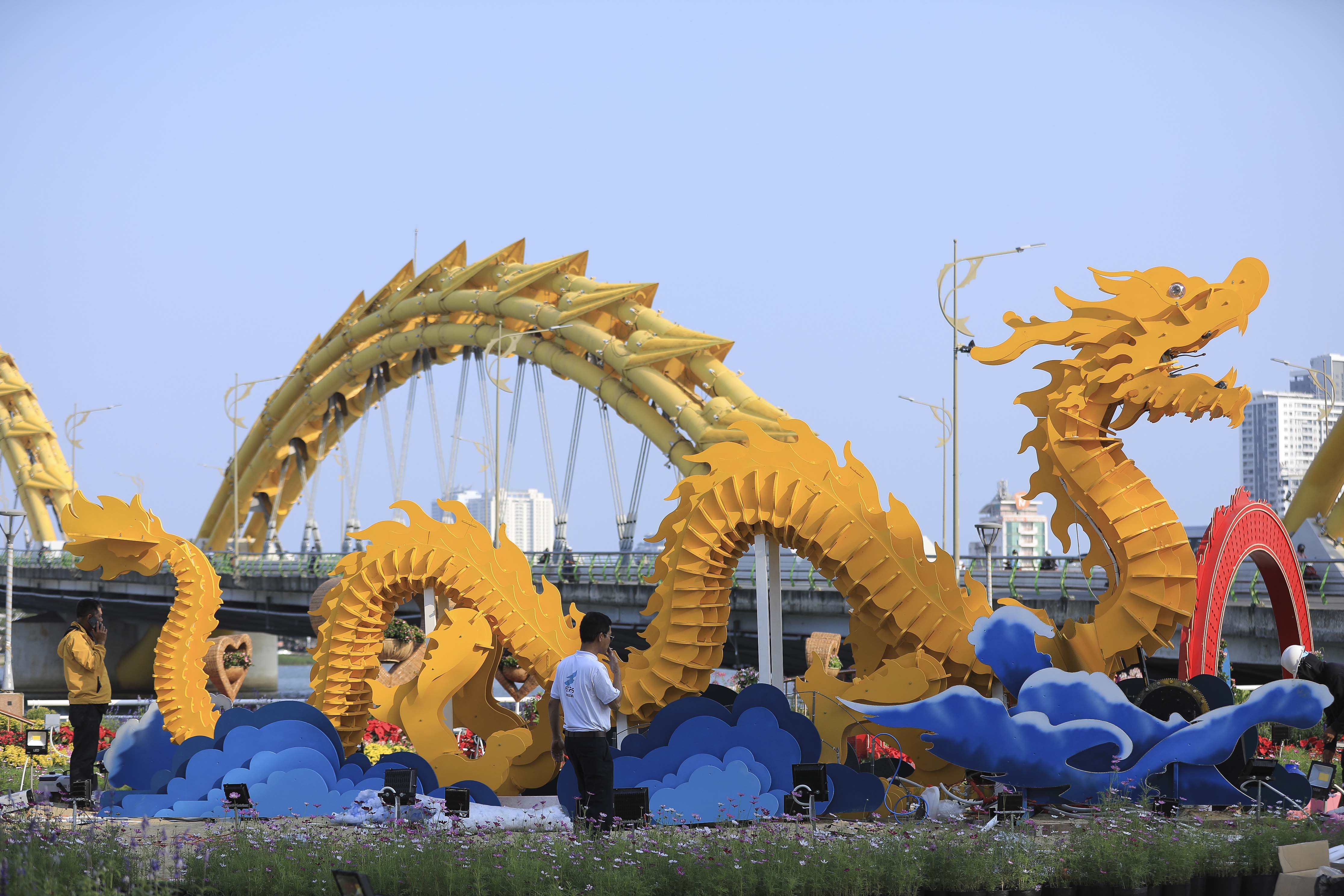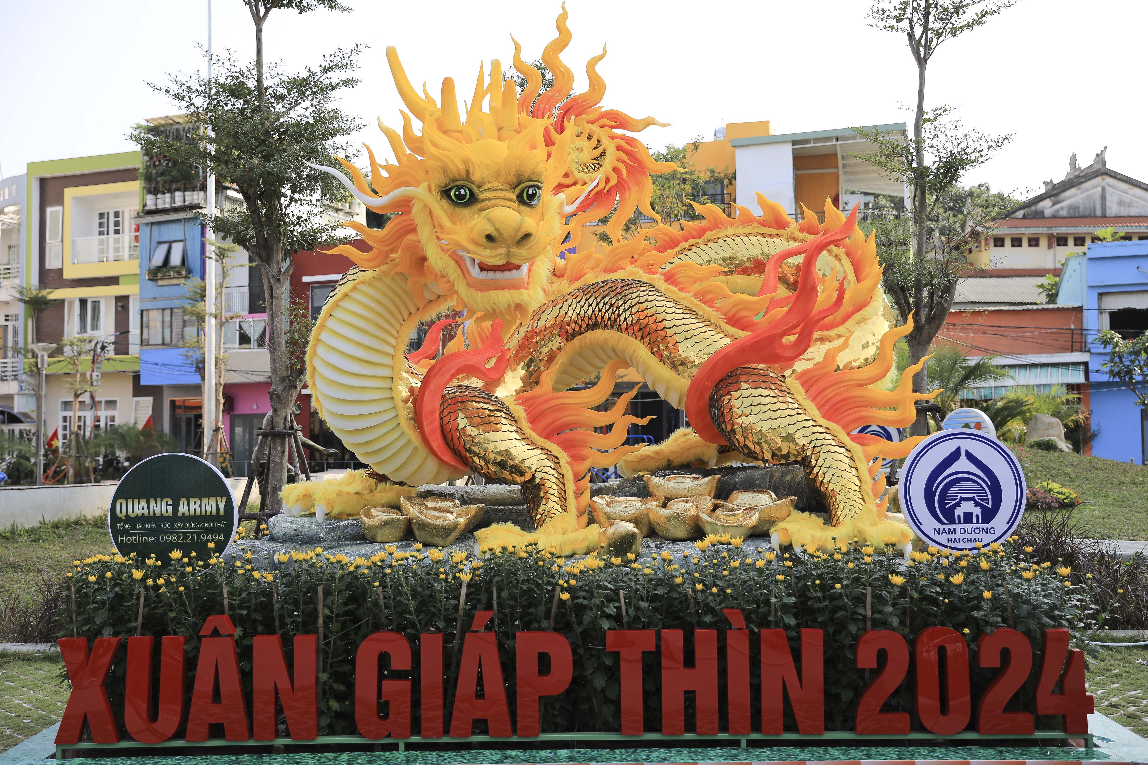 Sau nhiều ngày thi công, dàn linh vật rồng ở Đà Nẵng tại các cụm trang trí trên một số tuyến đường đã hoàn thành, phục vụ người dân và du khách vui Xuân, thưởng lãm, check-in dịp Tết Nguyên đán Giáp Thìn 2024.