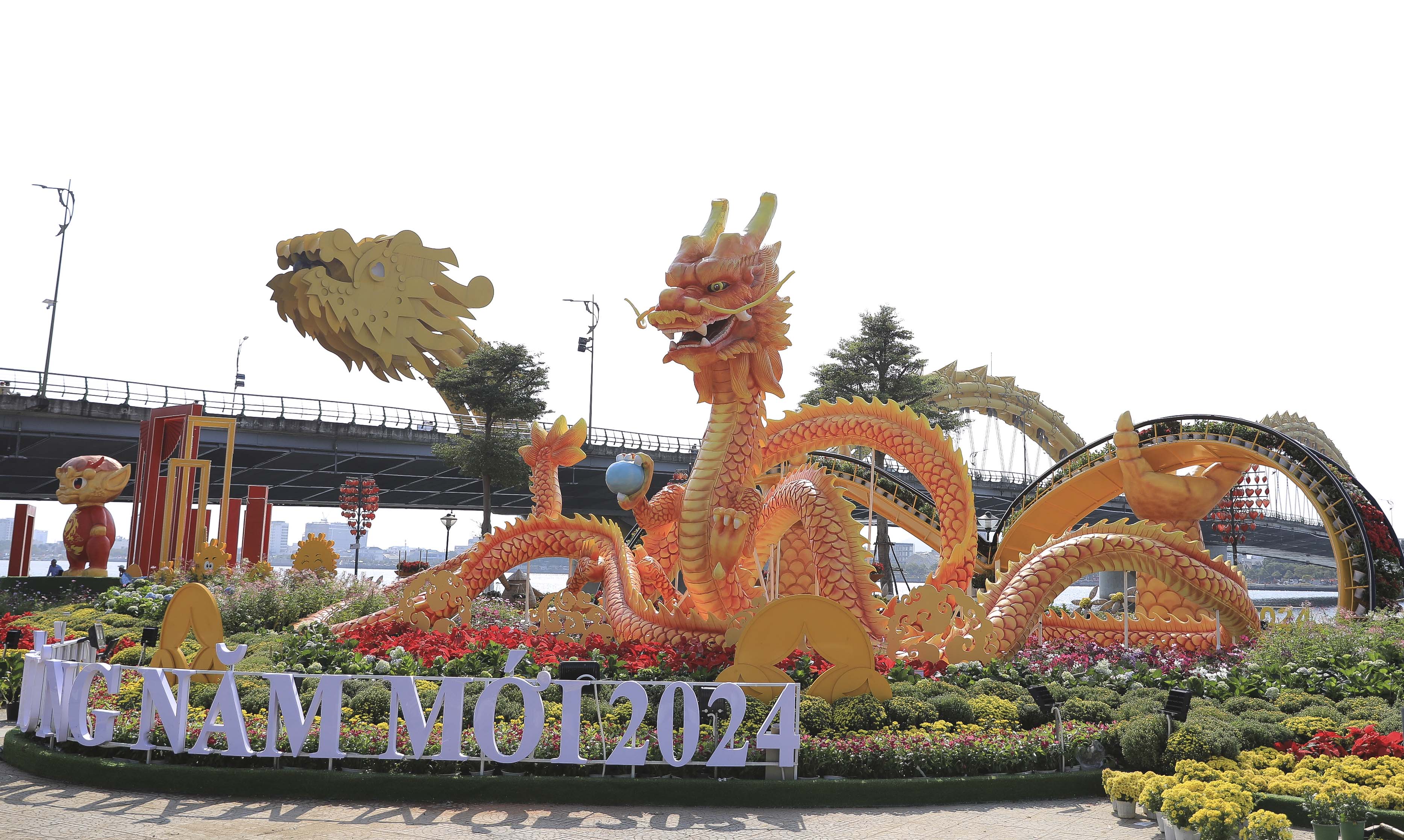 Nhằm tạo không gian vui Xuân, đón Tết cho người dân và du khách, UBND TP Đà Nẵng đã đầu tư gần 20 tỷ đồng trang trí hoa và điện chiếu sáng phục vụ Tết Giáp Thìn 2024 tại hơn 20 vị trí trang trí.