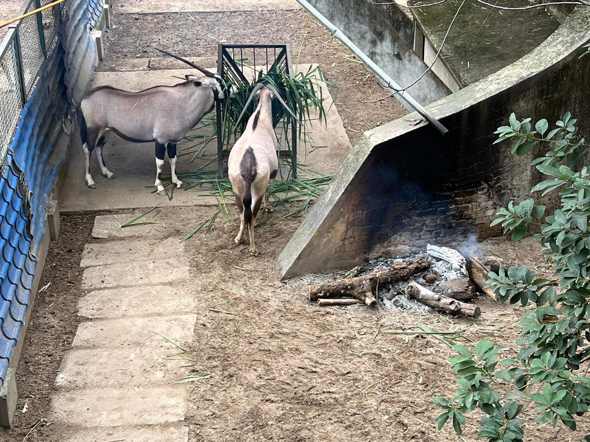 Tương tự, khu nuôi giữ các loài hươu, nai, linh dương… cũng được đốt củi ấm liên tục.