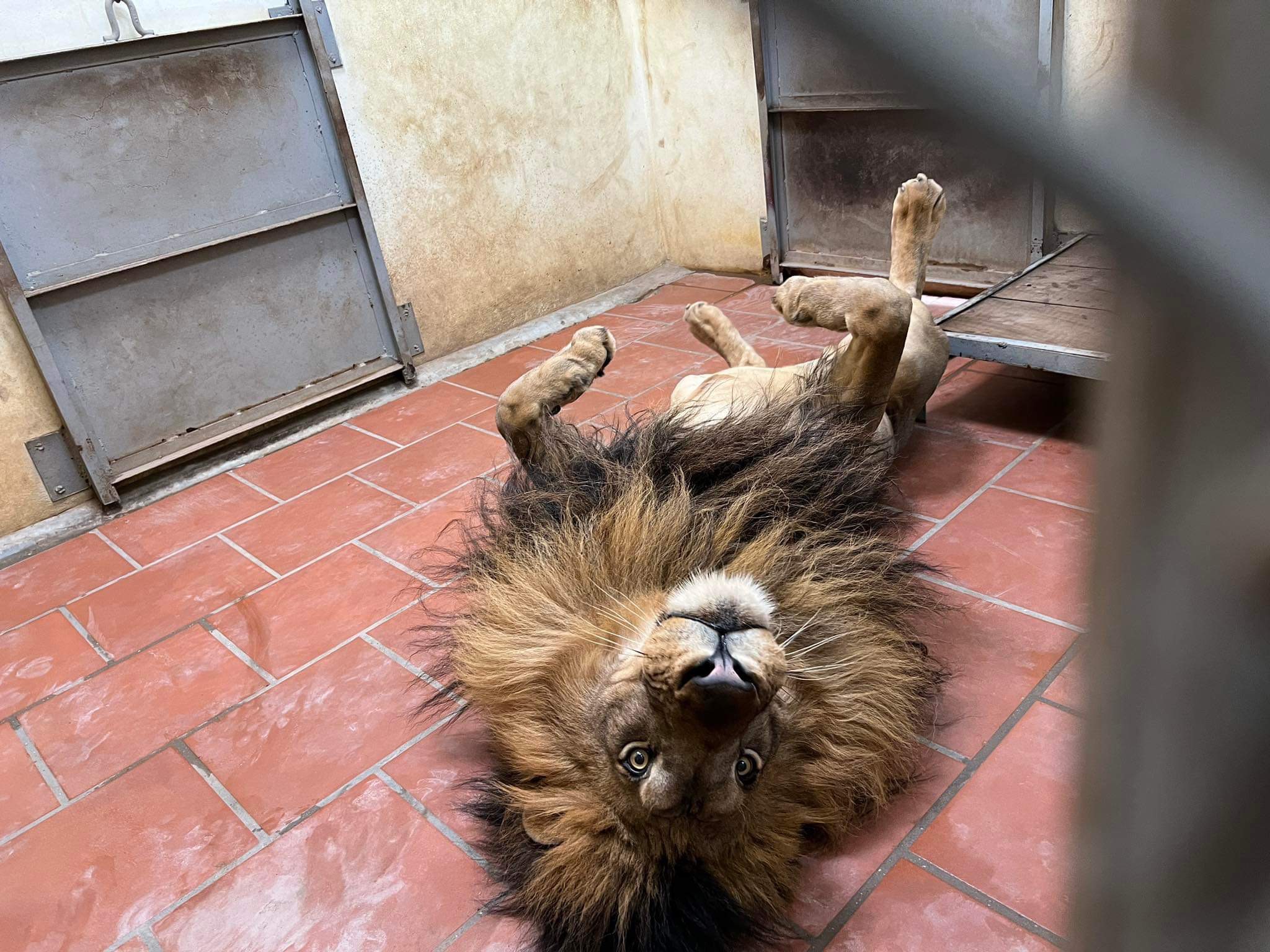 Nhờ được chăm sóc đặc biệt, những thú quý hiếm như sư tử được người chăm nom đặt tên. Trong ảnh là chú sư tử 8 tuổi tên “Chăm” là thế hệ F1 của 1 cặp sư tử được nhập về từ Nam Phi. Bố của “Chăm”, tên Nam được chăm sóc ngay chuồng bên cạnh trong điều kiện bảo đảm nhiệt độ ấm áp như ở quê hương.