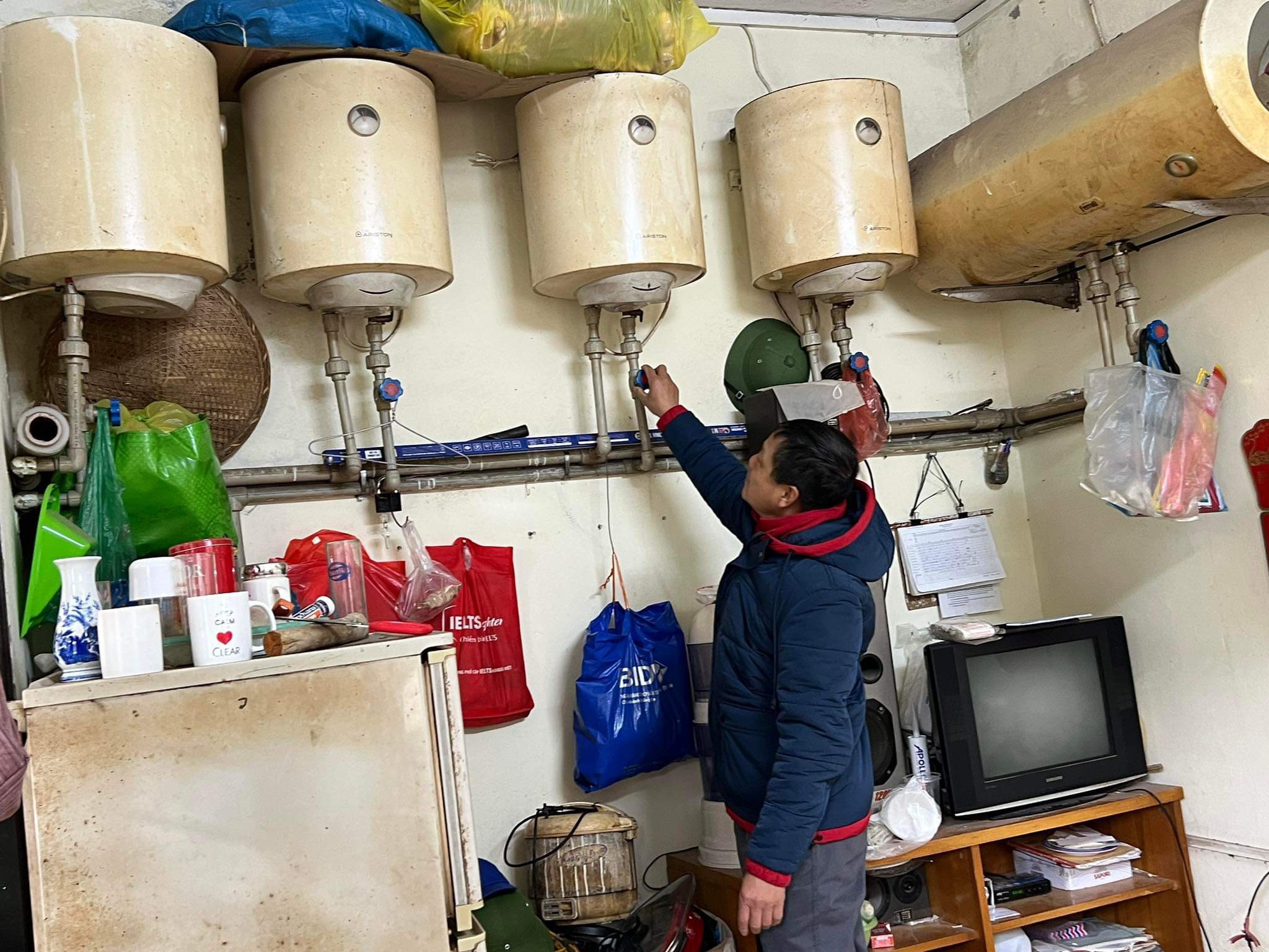 Tại khu vực chăm sóc hà mã, hệ thống 5 bình đun nước nóng cỡ lớn với tổng dung tích 400 lít luôn sẵn sàng cấp nước ấm cho bể đầm khi nhiệt độ ngoài trời xuống dưới 17 độ C.