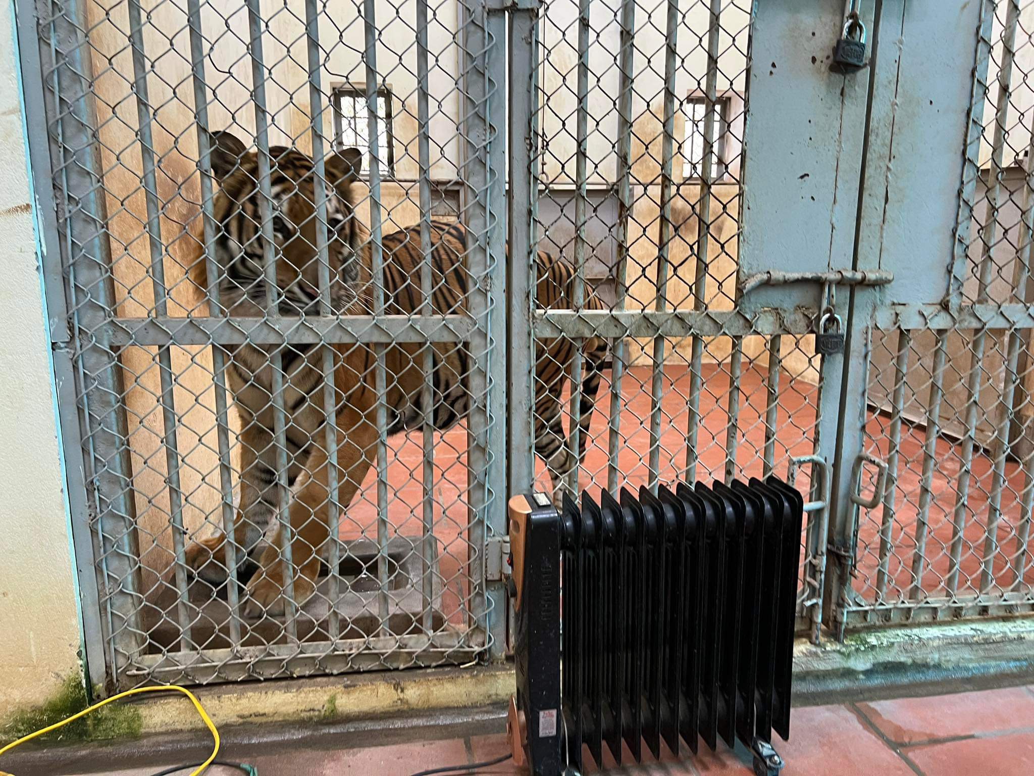 Đặc biệt, tại khu vực chuồng tạm, nơi đang nuôi giữ 2 sư tử và 6 cá thể hổ được trang bị các máy sưởi tại từng chuồng.