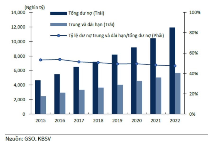Tỷ lệ dư nợ trung và dài hạn/Tổng dư nợ giai đoạn 2015-2022