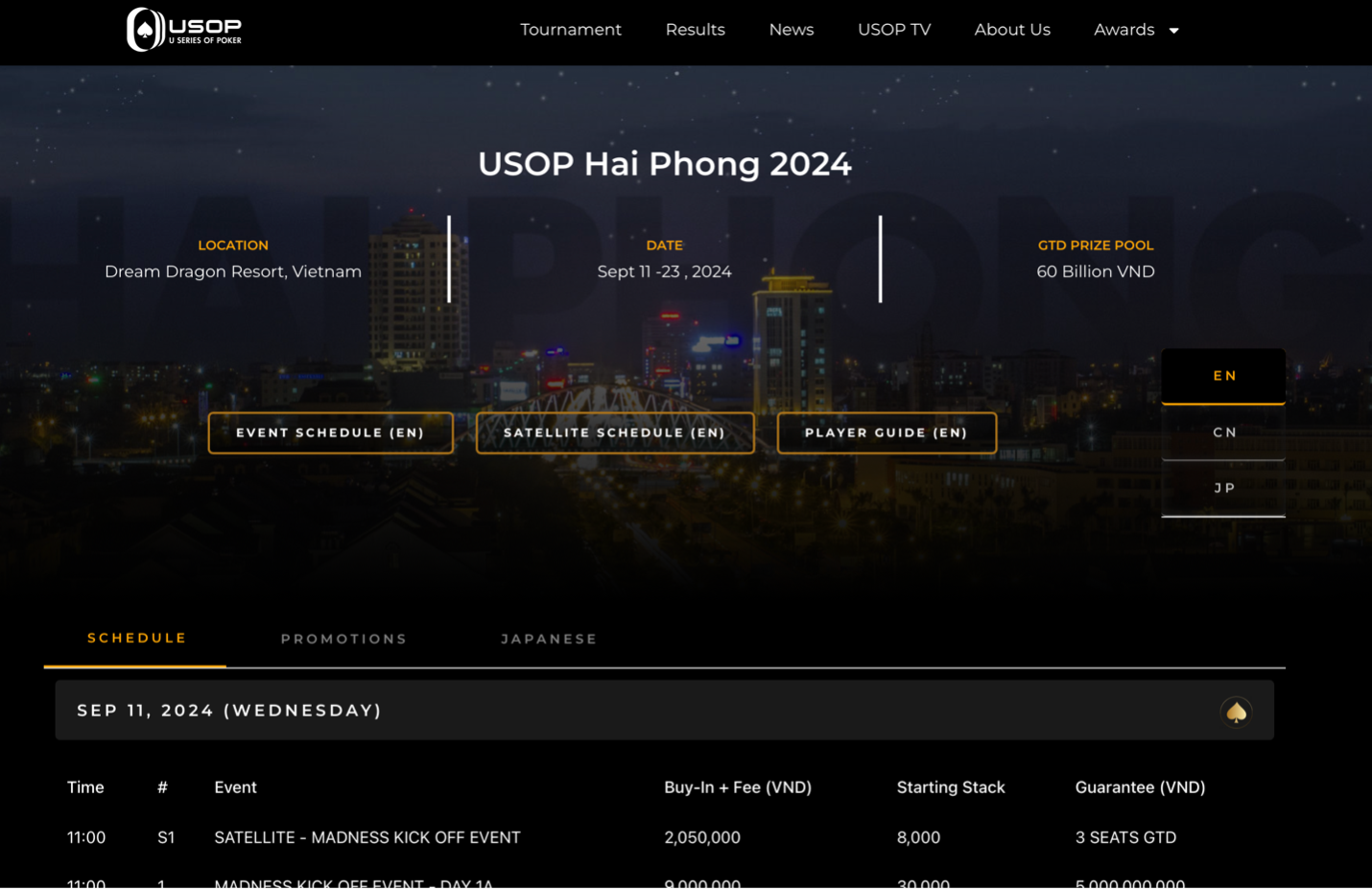 Đơn cử, "Giải thể thao Bridge và Poker USOP Hải Phòng mở rộng lần thứ 1 năm 2024" do Công ty Cổ phần Dịch vụ Giải trí Thiên Lộc tổ chức từ ngày 11/23/9/2024 tại Hải Phòng có cơ cấu giải thưởng tối thiểu lên đến gần 60 tỷ đồng.