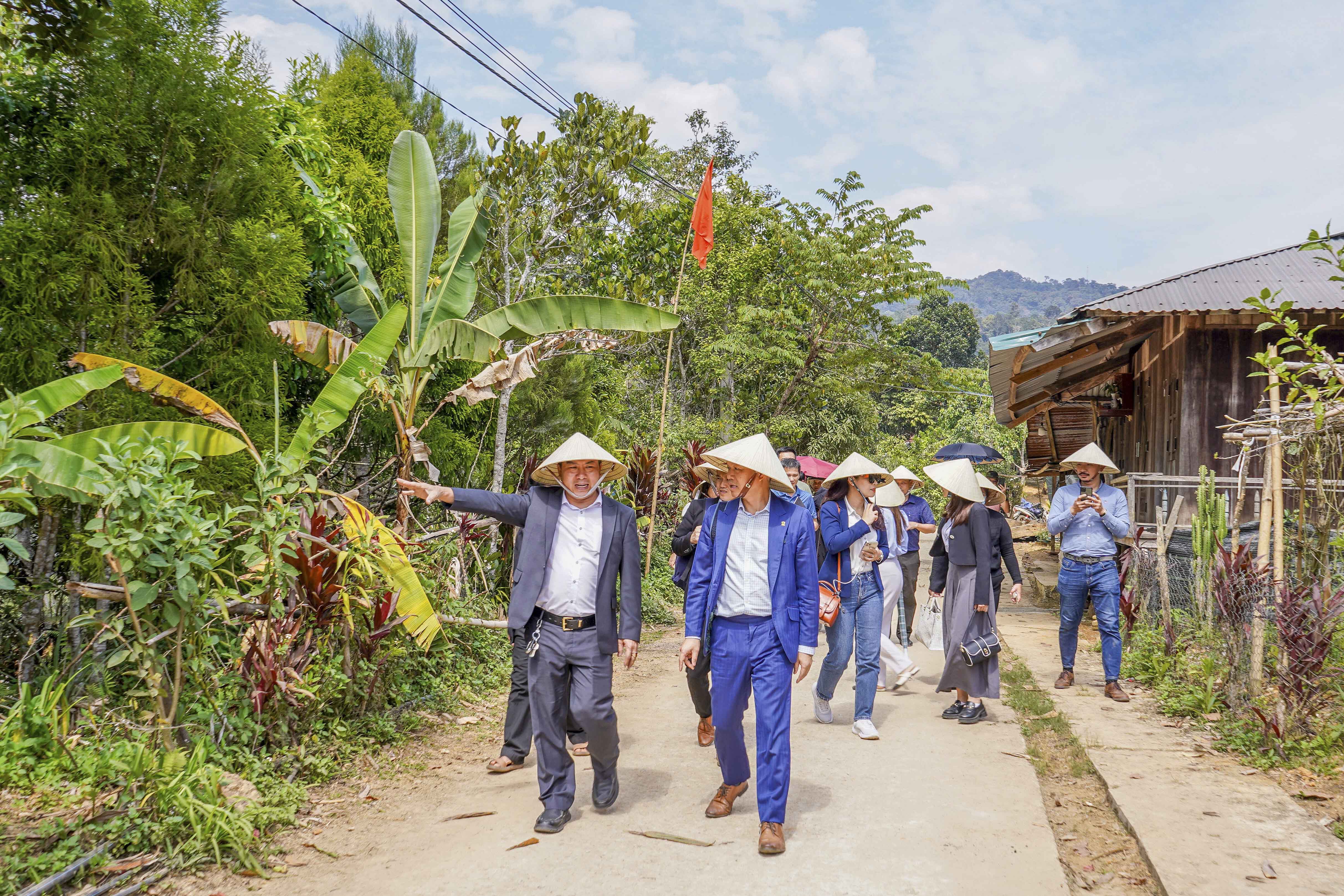 Lãnh đạo địa phương giới thiệu về xã Tr’hy và các khu vực sản xuất nông nghiệp cho các đại diện doanh nghiệp.