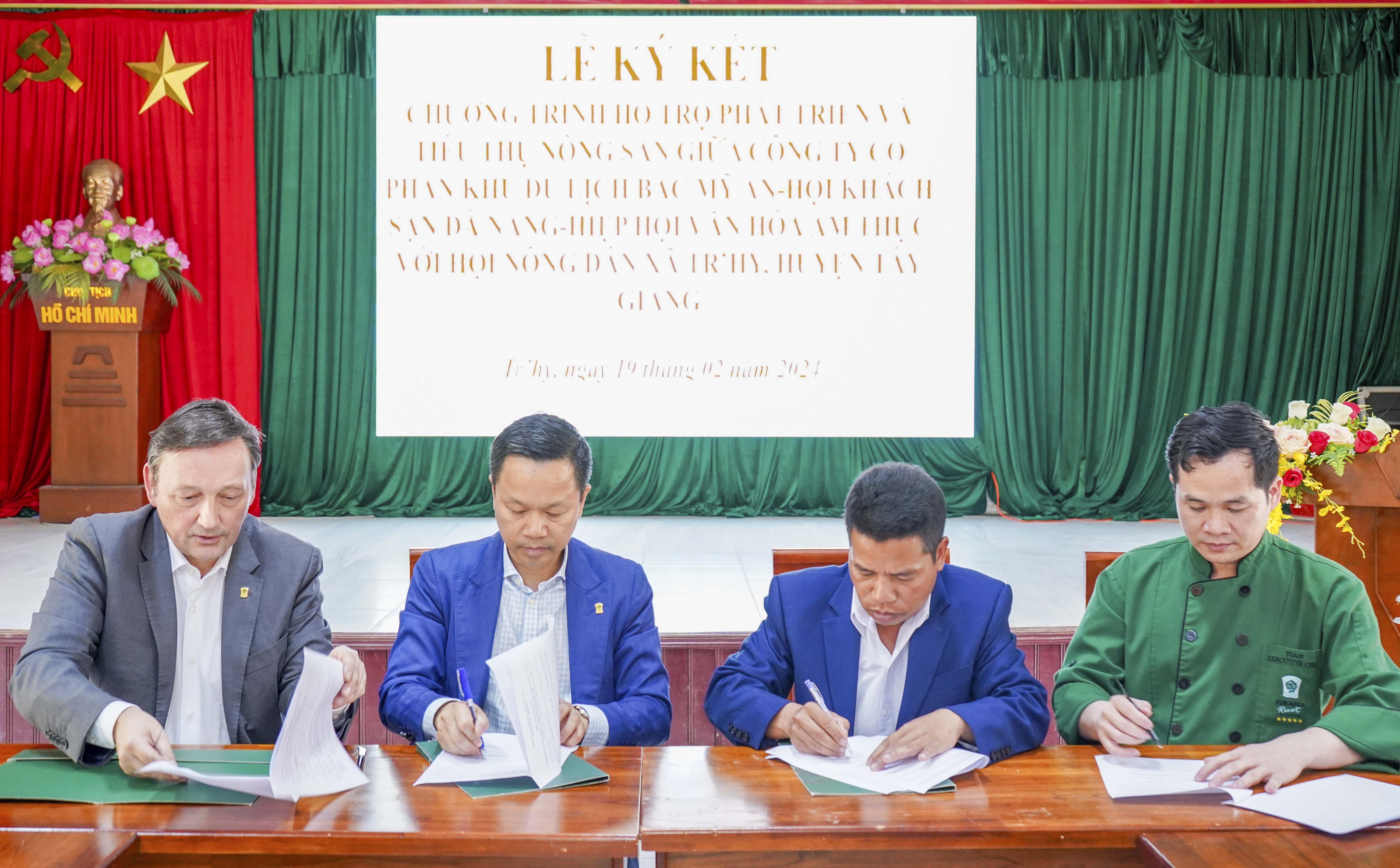 Vừa qua, tại UBND xã Tr’hy, huyện Tây Giang (tỉnh Quảng Nam) đã diễn ra lễ ký kết “Chương trình hỗ trợ phát triển và tiêu thụ nông sản giữa Công ty CP Khu du lịch Bắc Mỹ An, Hội khách sạn Đà Nẵng, Hiệp hội văn hóa ẩm thực Đà Nẵng và Hội Nông dân xã Tr’hy” về việc bao tiêu nông sản, hoa màu của người dân địa phương, đảm bảo đầu ra, hướng đến mục tiêu phát triển du lịch bền vững, gắn với hoạt động xây dựng cộng đồng địa phương.