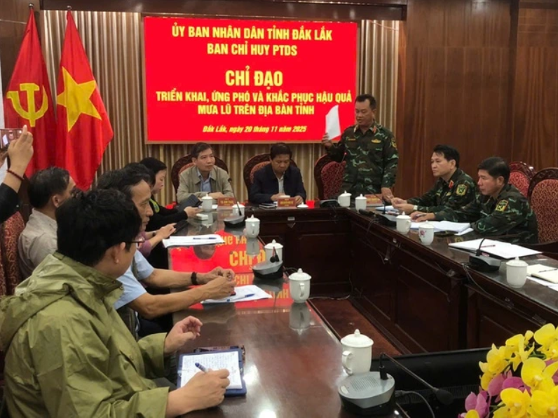 Sáng hôm nay (20/11/2025), Ban Chỉ huy phòng thủ dân sự tỉnh Đắk Lắk đã tổ chức họp khẩn về việc ứng phó mưa lớn, ngập lụt tại các địa phương ở khu vực phía đông (Phú Yên cũ). Tại cuộc họp, Thiếu tướng Trần Thanh Hải, Phó Tư lệnh Quân khu 5 đã đề nghị các cơ quan, lực lượng khẩn trương huy động phương tiện chuyên dụng, hỗ trợ di dời và phân phát lương thực thực phẩm cho bà con hiện đang bị cô lập.