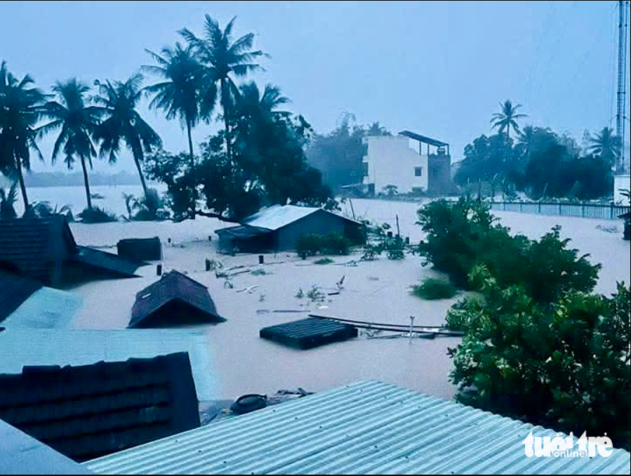 Xã Đồng Xuân (Phú Yên cũ) chìm trong biển nước. (Ảnh: báo Tuổi trẻ)